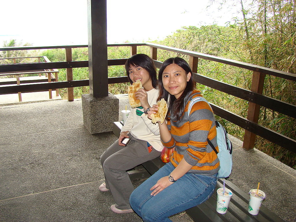 我o地去到一個涼亭,一邊嘻嘻哈哈,一邊享用嫂嫂預備俾我o地o既燒餅豆漿麵包~呢度可以望到海o架~