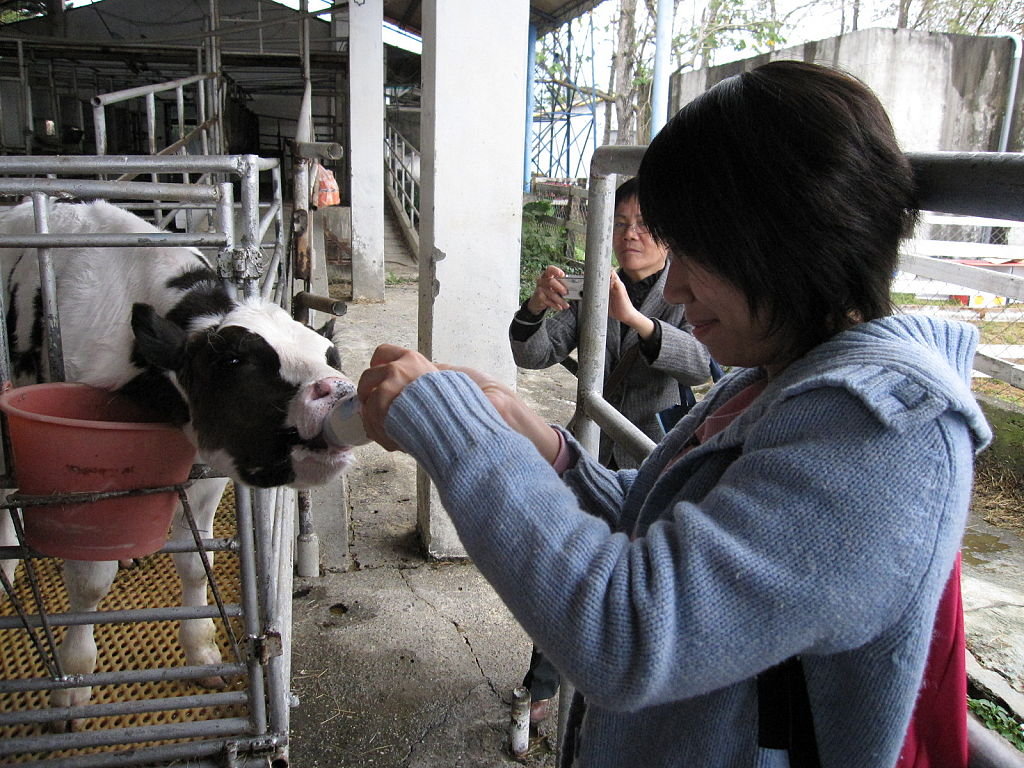 那隻異常飢渴的乳牛喝完妳餵的奶,又急急喝其他人餵的奶。顯然牠是被牧場管理員刻意扣糧,然後再讓遊客餵飼牠。