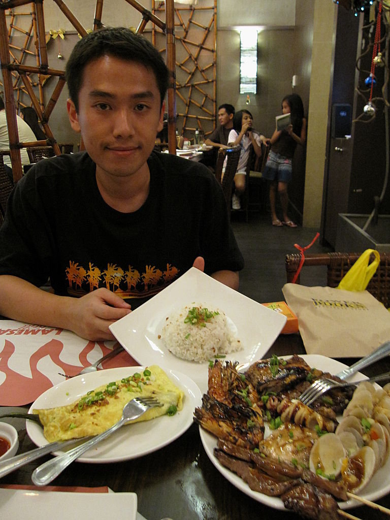 我o地叫o左雜錦grill拼盤,有肉有海鮮咁啦,雖然係一間頗高級o既店,但似乎菲律賓人真係唔介意D食物唔夠熱咁呢,個grill都唔係太熱,儘管係新鮮整出o黎?﹗另外o既唔係蛋包飯,而係蛋包茄子﹗