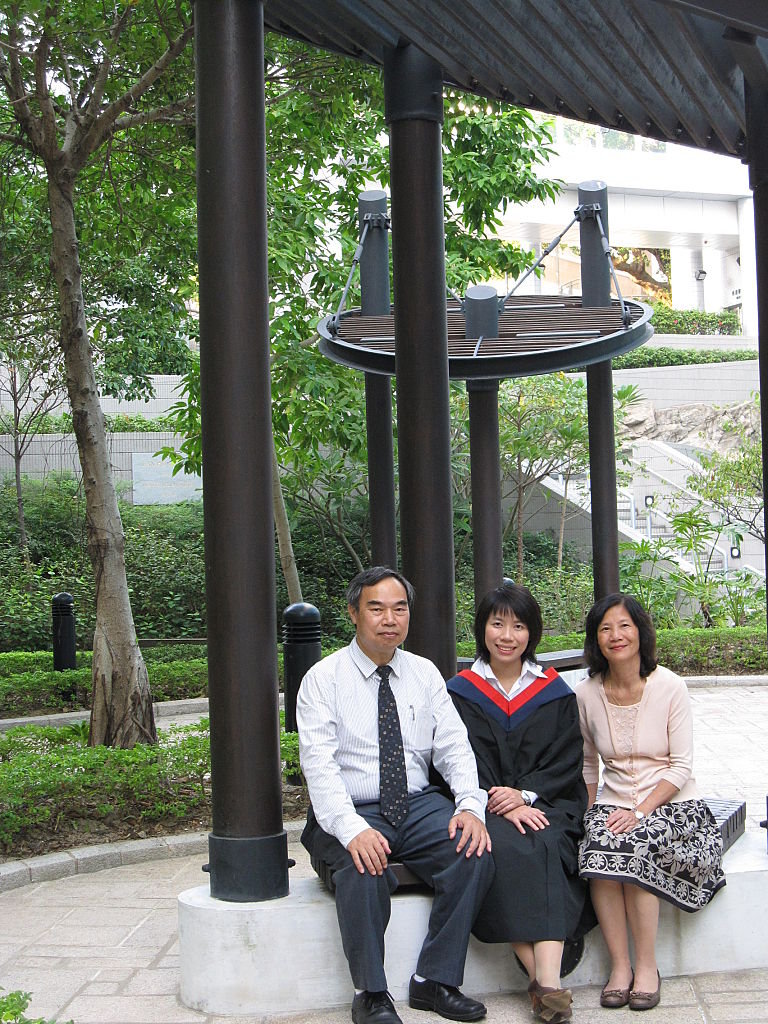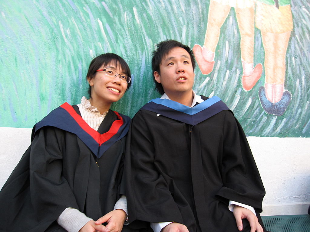 恭喜你地呀!你同你家姐一齊畢業可以講得上雙喜臨門.原來香港既大學同master畢業袍既領口位同手肘位都唔同架喎. d 相影得好靚呀, 再一次恭喜晒!!