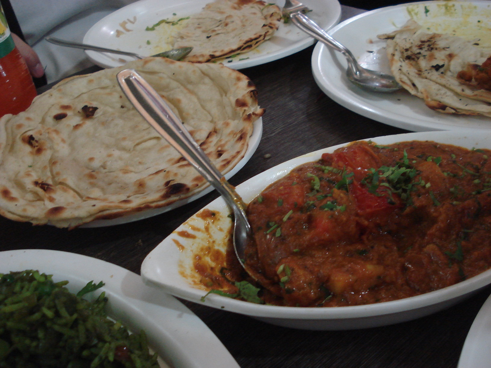 食飯又去番之前去過好幾次o既veg餐廳,umum…味道係幾好,環境係幾好,但偏偏達唔到賓至如歸o既水準o羅~奇怪﹗可能就係服務唔夠殷勤,未至於有個好風趣o既waiter o黎同我o地chat吧?今日都係食D普通o野咋,veg noodles、hong kong fried rice(犀利吧﹗幾好味,但不太hong kong~呵呵~)、veg moglai(上次係第二間餐廳食過chicken moglai覺得好好味,但今次又中等咋喎,唔知係技巧問題定係雞同菜o既分別呢?)、veg pizza、rotis咁o羅~其實都係咁上下o架咋,好在都未食厭,而且間中都遇到一D煮得好中國o既中國炒飯炒麵,所以暫時都未係好掛住好掛住香港o既美食o既~