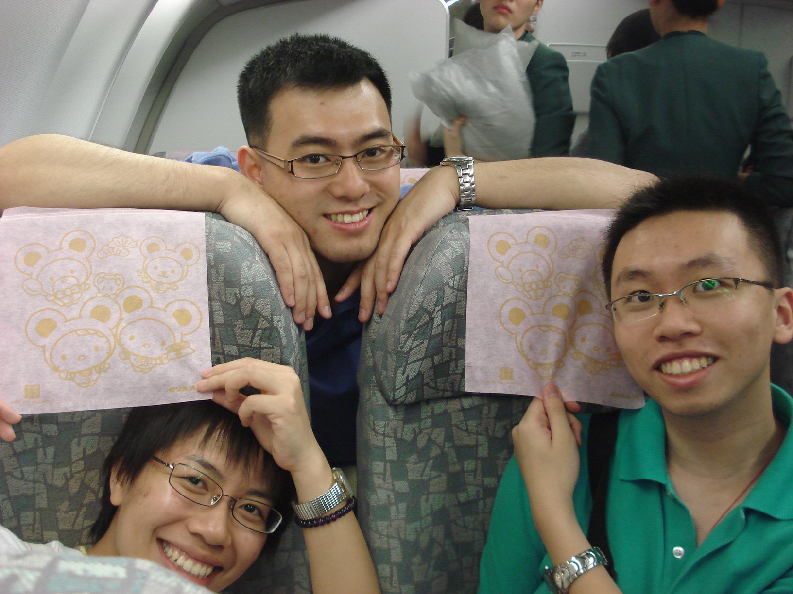 哇,上到飛機,哇哇哇,點解會咁o既?﹗D椅背墊墊咁靚o既?係hello kitty?莫非…莫非我o地坐o左長榮o既少數sanrio飛機? 證實了﹗