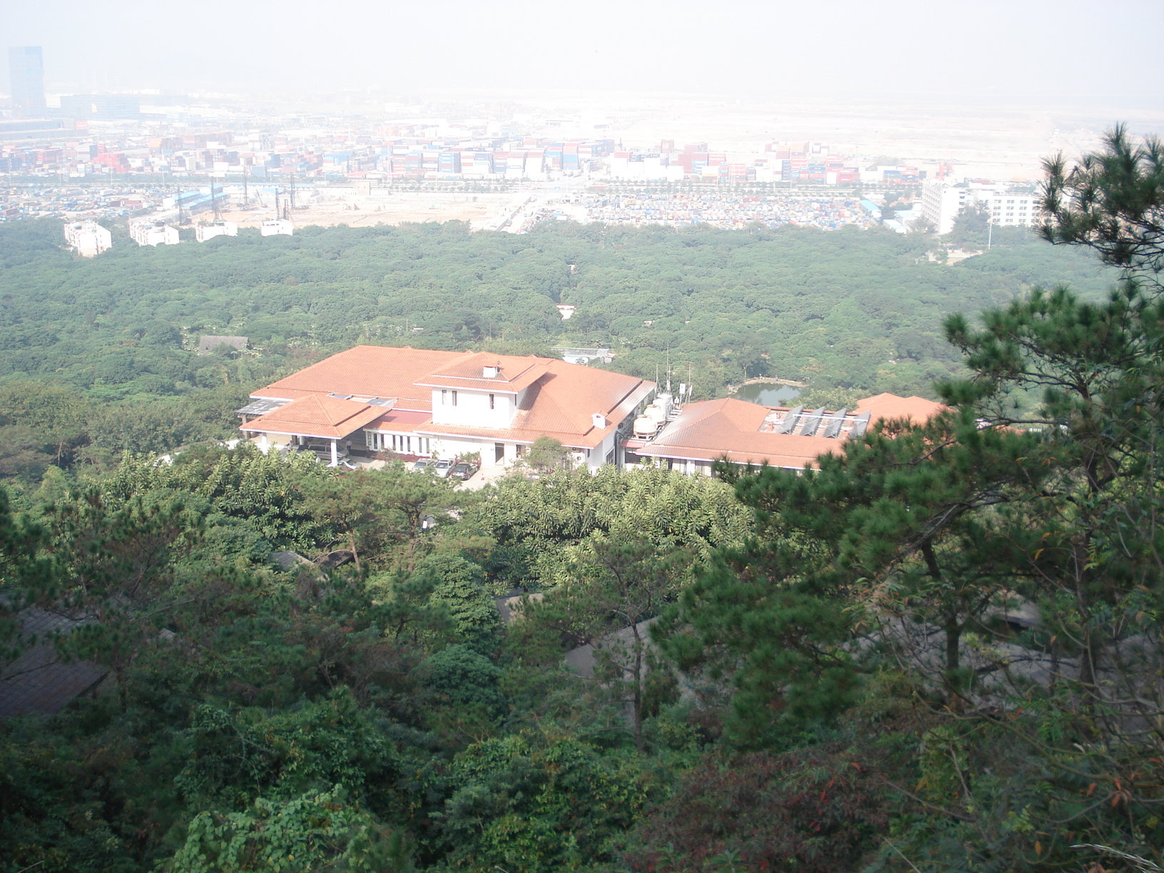 由山上面望落去,紅色頂o既就係我o地住o既酒店了,你睇,俾好多樹木圍住o架~近山邊少少o既有D木屋o既屋頂,其實呢D木屋仲貴呀,因為係樹林之中夠舒服丫嘛~