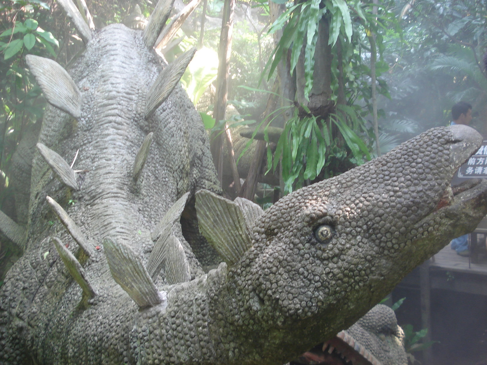 之後爺嫲join埋我o地去參觀青青世界o既大熱景點「熱帶雨林」,人造o既熱帶雨林展示o左D參天古木(有真有假吧)、動物、魚類、仲有恐龍模型﹗沿途煙霧彌漫,好有探險氣氛,有一段路仲會落雨添呀,要擔遮擋雨﹗