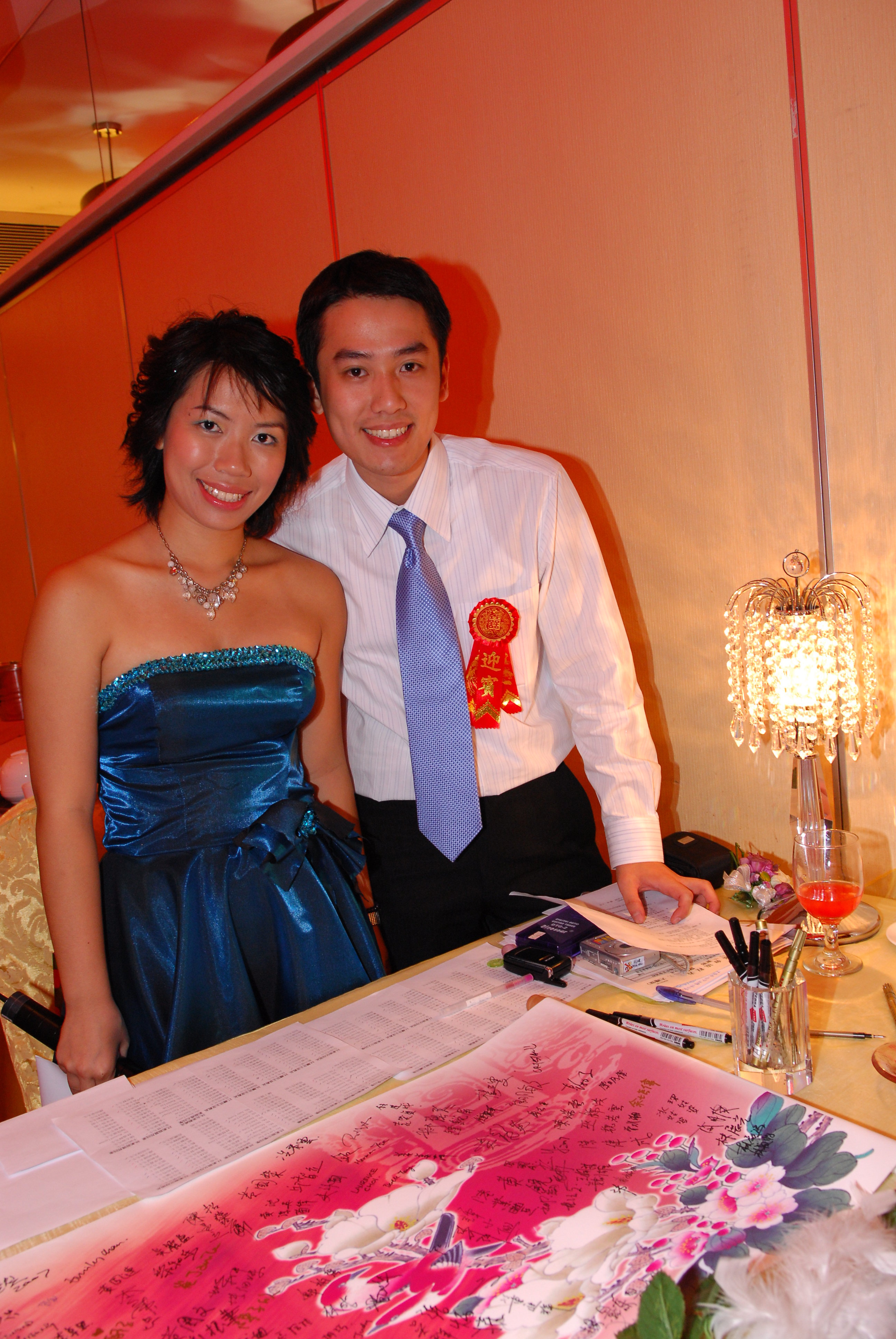 之後我要負責快閃,第一批人趕過去酒樓,接待早D o黎o既親友~的士逼滿五個人,我同day啦,另外有恒仔o既friend mandy同埋janice,我o地四個負責reception,另外仲有子健,佢有重要任務呀,要拎D菲林去金都商場,即日剪片,咁夜晚時就可以播番即日片段嘛~係車上我o地三個女生狂吱喳,講到聲都沙添~兩位男士就靜靜的,唯獨司機大佬係度答訕,呵呵~