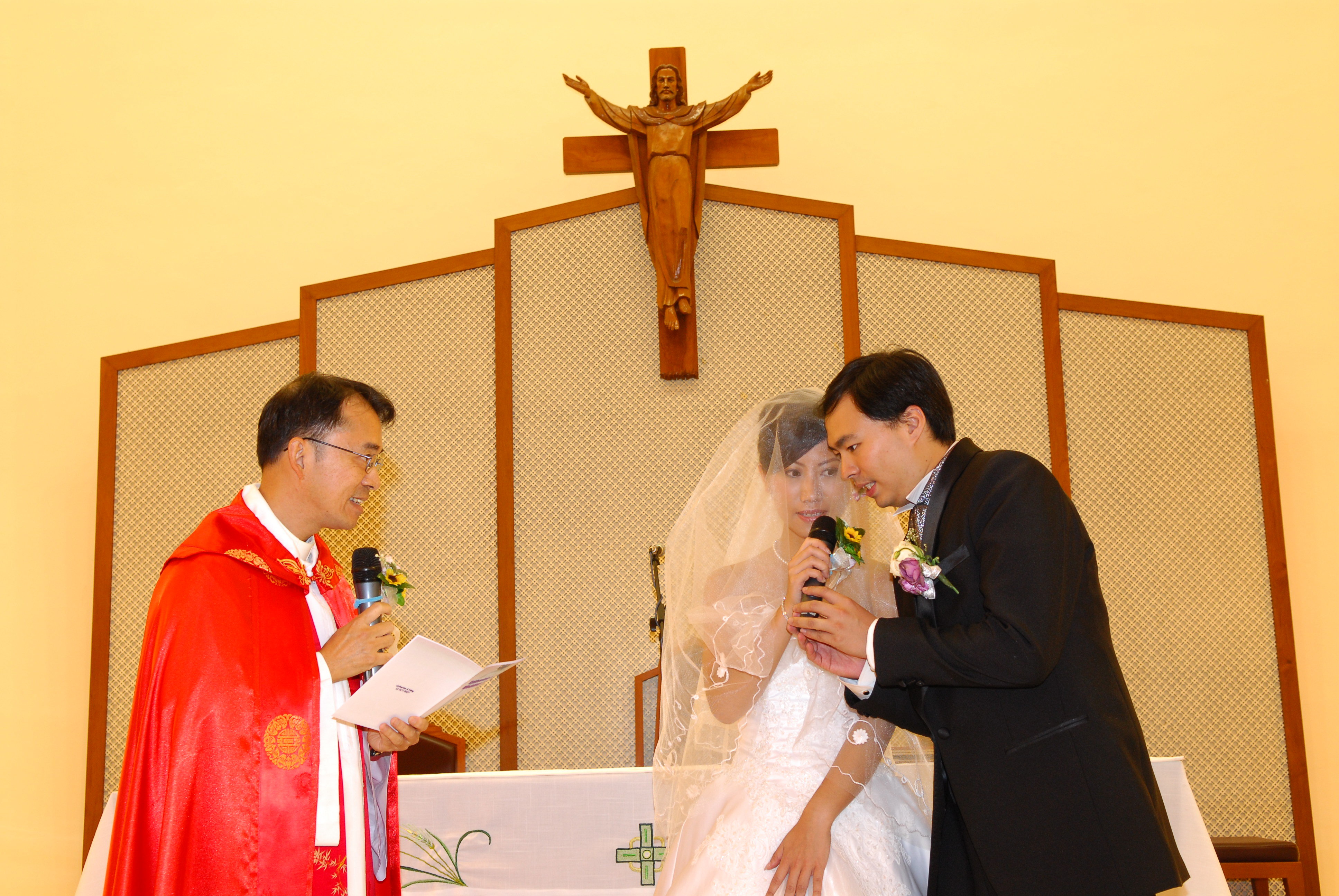 因為篇幅有限,已經去到締結婚約o個part了,家姐邀請o左由細睇到佢大o既林祖明神父為佢o地主禮~而家家姐同恒仔o既對白應該講緊「我們願意」,係對天主o既承諾o黎o架~