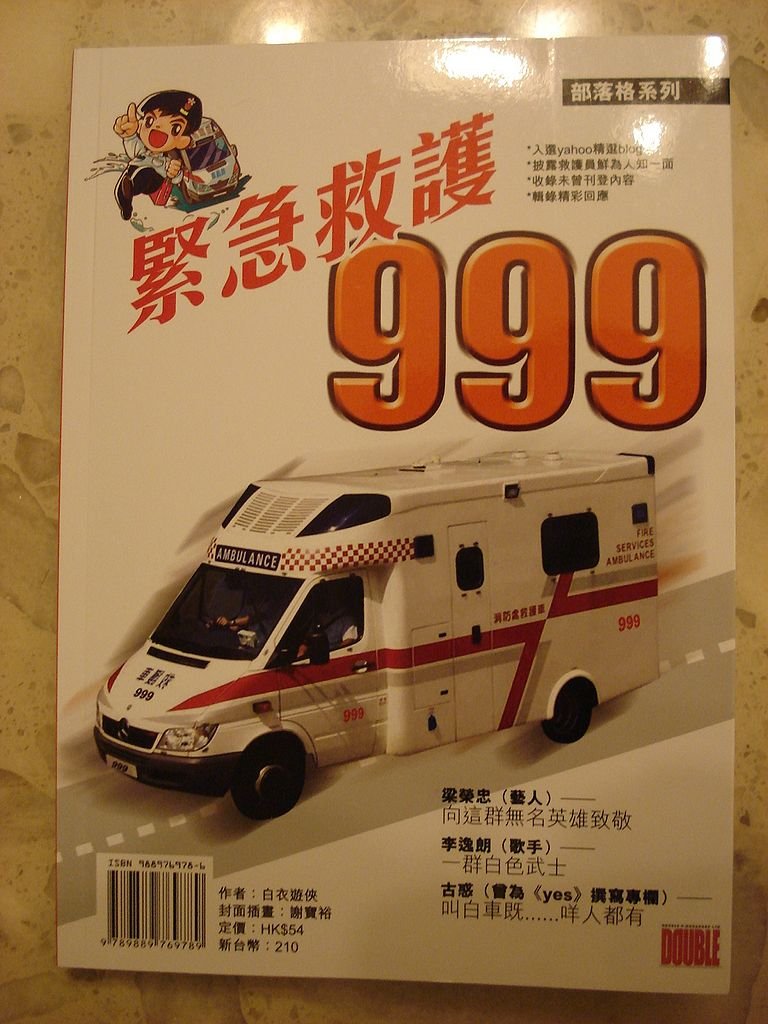 「緊急救護999」:呢本係blog友小姑娘介紹的﹗其實我都有subscribe白衣遊俠個blog,不過平時好似追住睇,今次買o左本書可以慢慢睇~希望其他blog友將來都出下書啦(例如小姑娘﹗)~