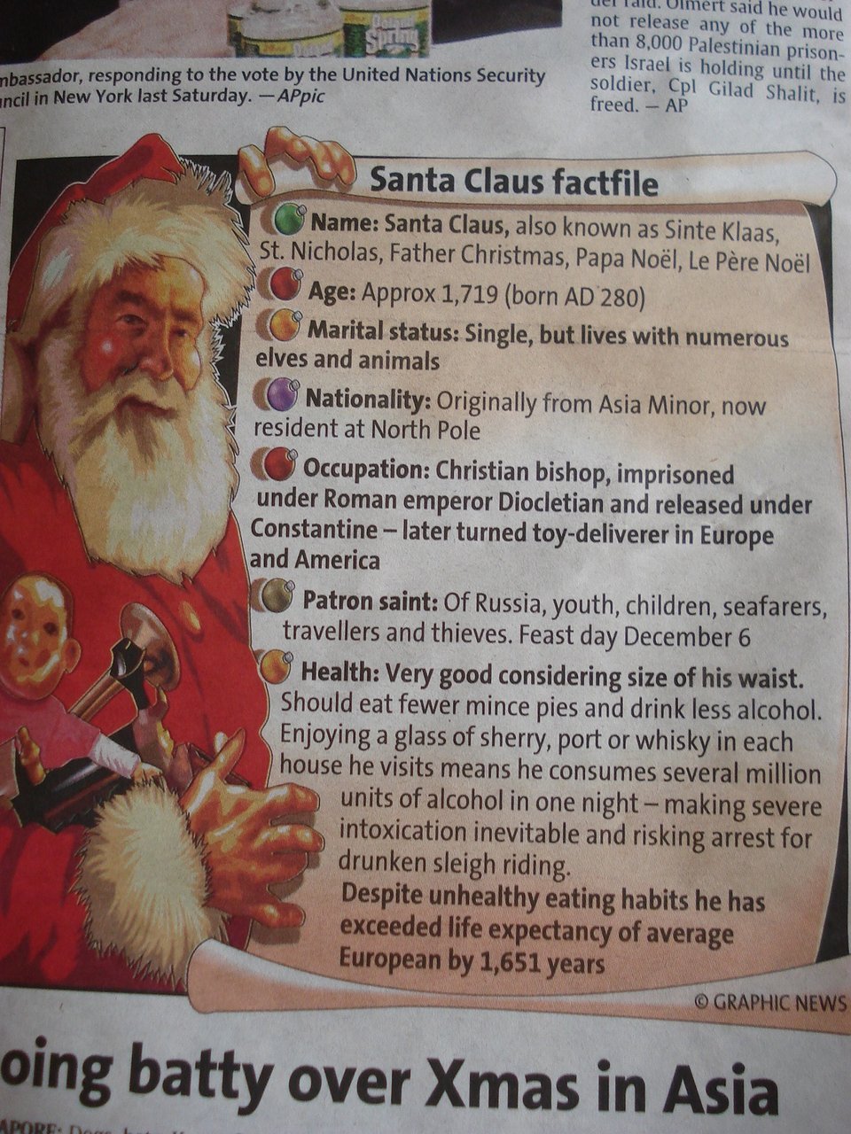 搭飛機時係度翻閱派發o既馬來西亞報紙,呢D英文報紙都幾易睇,內容又都算有趣,其中一則係講聖誕老人o既profile~大家可以睇睇﹗