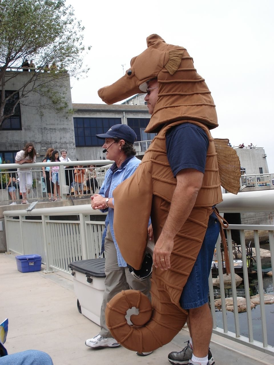 The staff (with blue cap) explained to us the features of a seahorse: a fin like a fish, a pouch like a kangaroo, a tail like a monkey and a face like a horse. As seahorse daddy bears the kids, she looked for a dad in the audience to pretend a seahorse!!! There was not a lot of information in the show but it was fun.
