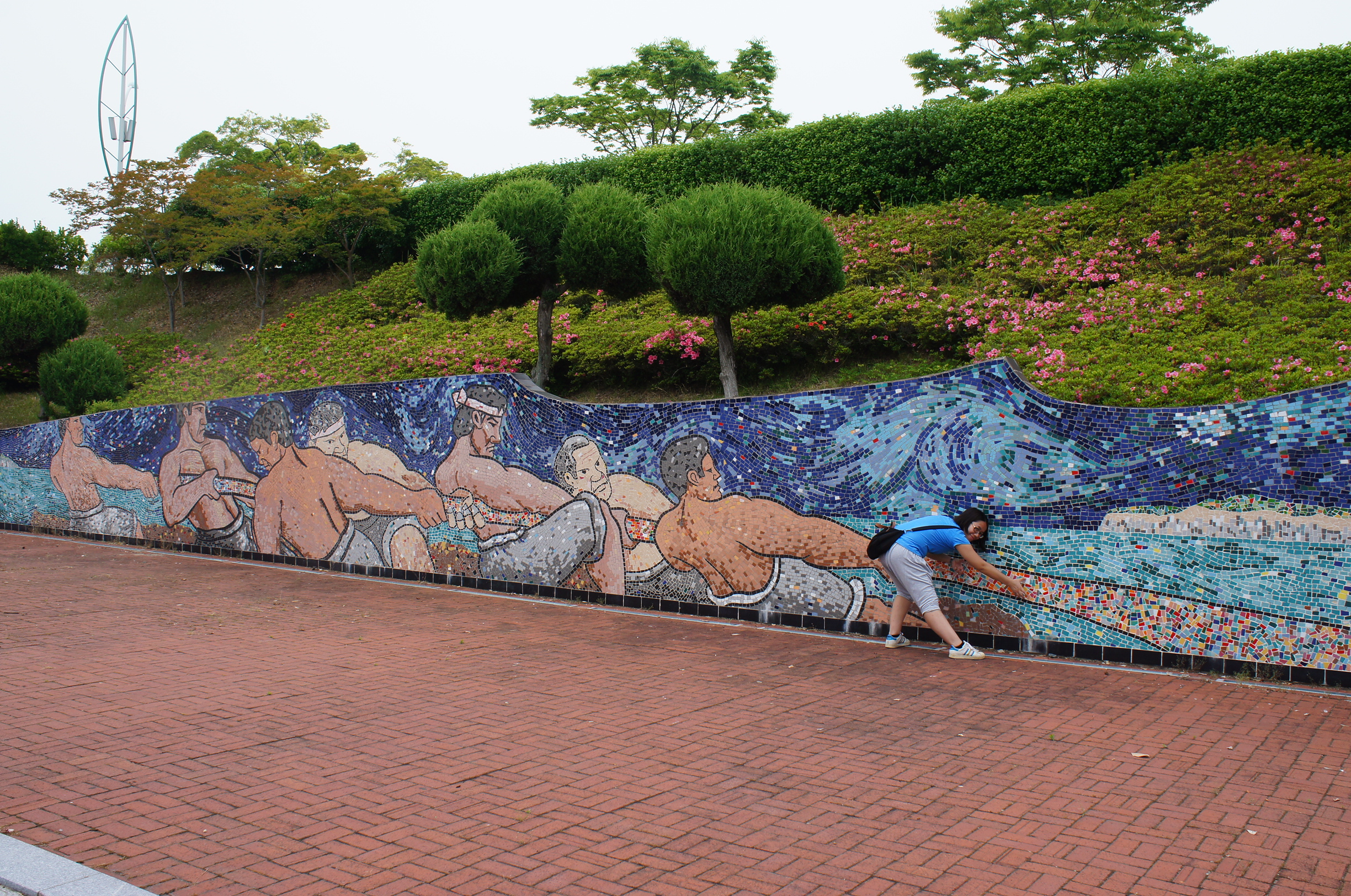 我哋就按佢指示,係梧桐島個巴士總站搭車出去市中心,其實本身都想搵地方食lunch,但我哋係巴士度先發現咗第一個景點—-鎮南館,咁我哋就係參觀先啦~ SONY DSC鎮南館係以前1590s抗日時期o既building,但後來大火之後再重建,就成為而家一個標誌而已~SONY DSC 大招牌 SONY DSC   而家只留低外殼~   SONY DSC 不過加埋外面o既草地,都不失為一個舒適o既休憩空間~ combine museum   下低有個小小資料館,介紹倭寇入侵o既歷史,當然唔少得李舜臣將軍同埋龜船啦~不過呢個資料館搞鬼o既地方係,同之後o既釡山博物館一樣,啲英文or中文話嚟就嚟,話走就走,睇睇下呢一段介紹有中文or英文,下一部份就忽然會得番韓文,^_^”