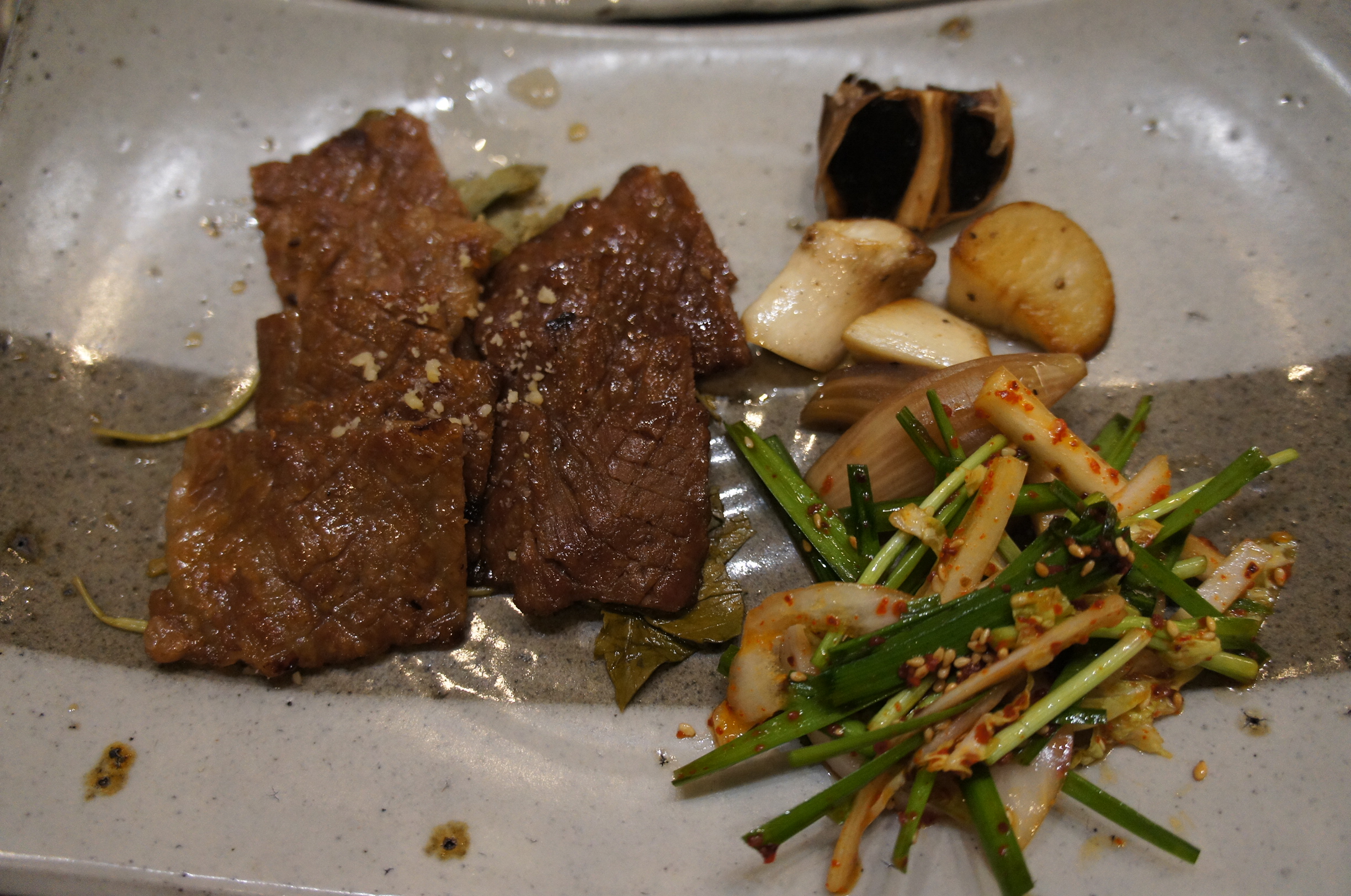 另一主角上場了,係烤o既牛肉,雖然唔算柔軟嫰滑,但肉味幾香濃~但更加勁o既係,旁邊o既配菜都有三款﹗最特別o既係最頂o既黑色蒜頭,唔知點整出嚟,軟腍腍的,蒜頭原本鮮辣o既味道同埋脆脆o既口感完全唔見咗~