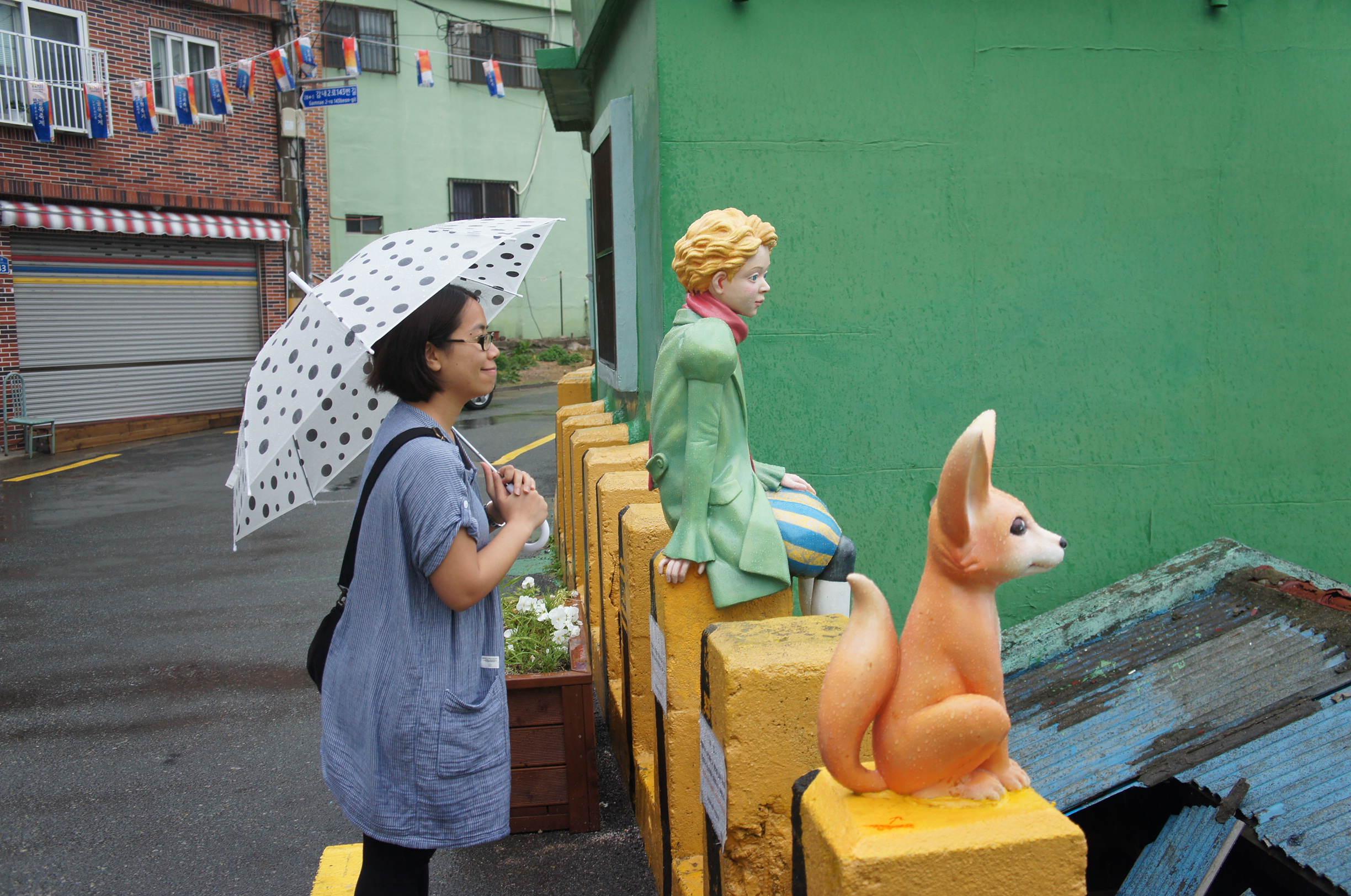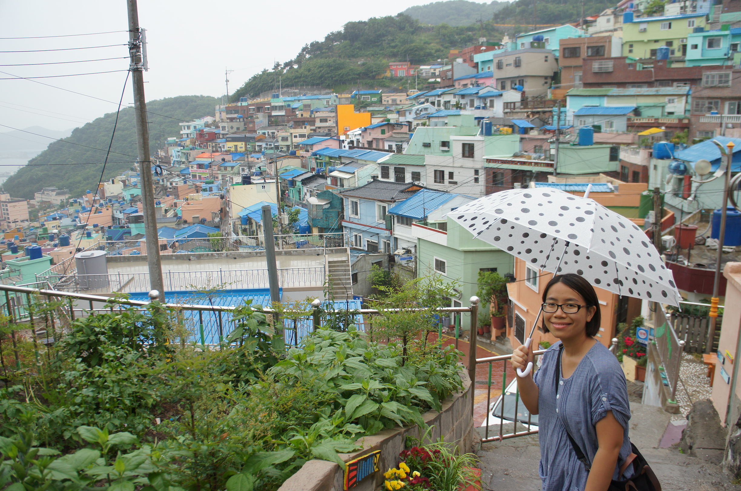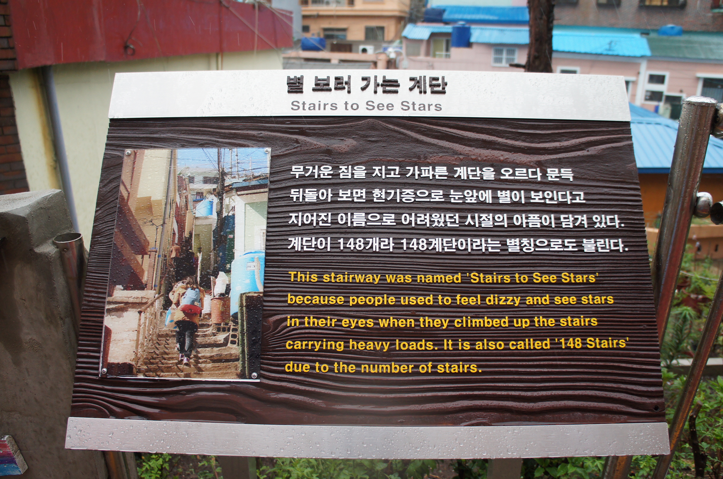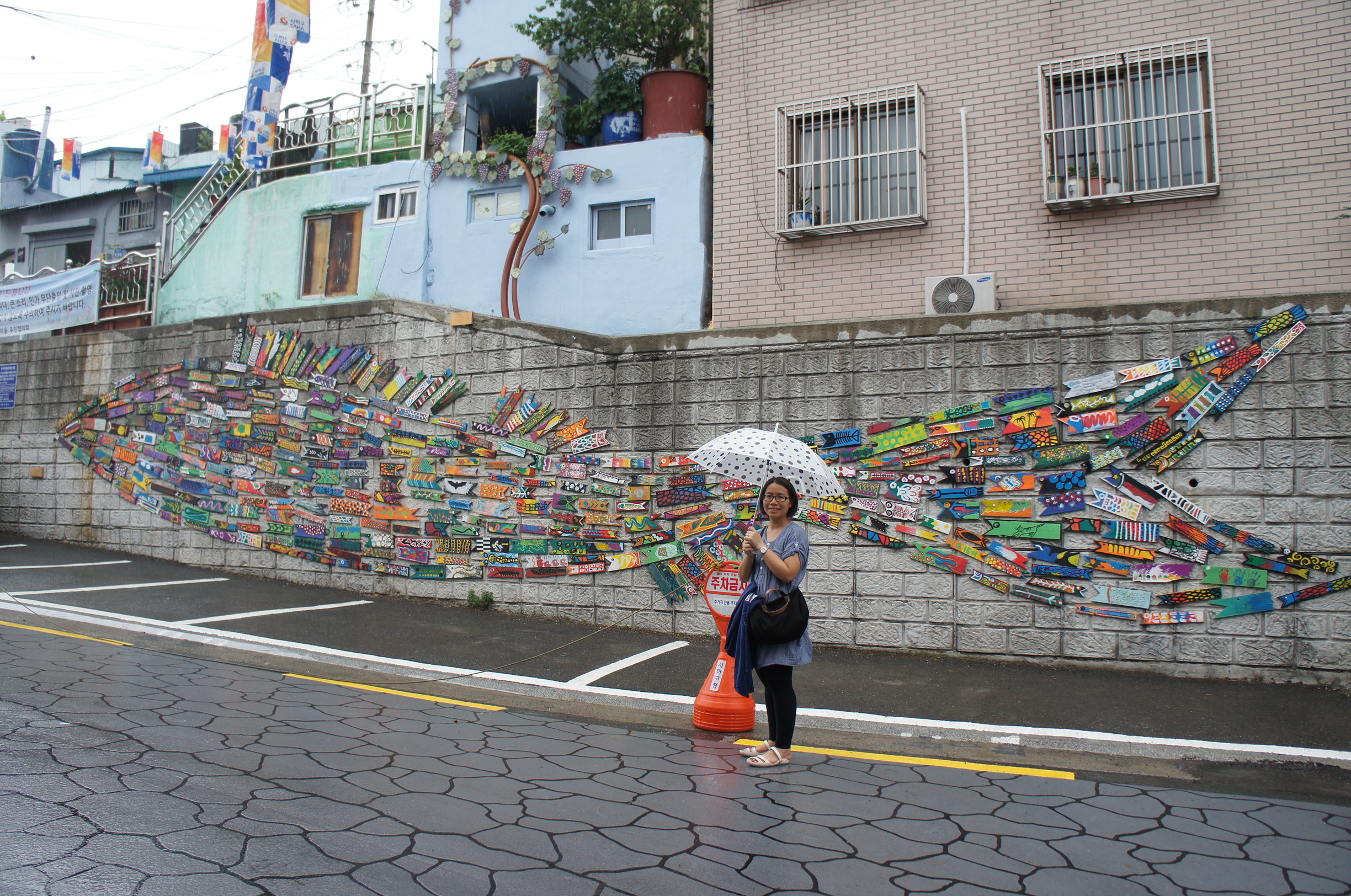 甘川洞文化村其實以前係安置難民o既地方,後來好多人搬走咗,為咗要活化呢度,搵咗啲藝術團體,有啲空置咗o既屋用嚟做gallery,展示啲藝術作品,而成個區就髹上七彩繽紛o既顏色,成為釡山內一個有特色o既區~當然,而家都仲有人住係呢度啦,所以旅遊書都提醒大家參觀還參觀,但都要保持安靜,唔好打擾人哋o既正常生活~
