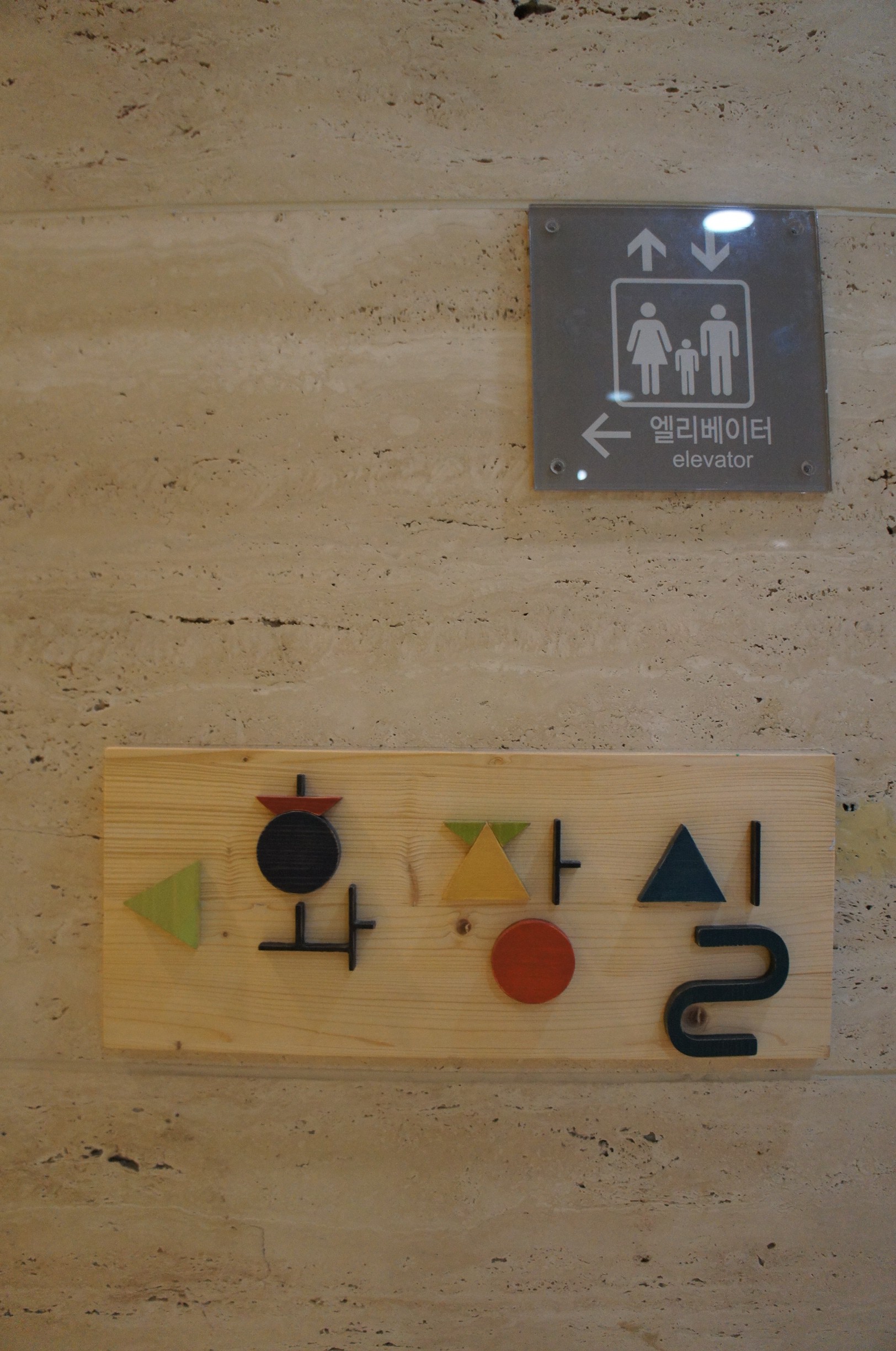 今次呢個就有用喇,話說day行行下話想去廁所,佢話記得樓上嗰層有廁所,我望到呢個指示牌,我話,唔駛上去啦,呢度咪有囉~事關呢度只有韓文「hua-zang-sil(化妝室)」,就只有我識睇喇,呵呵~(沾沾中…)