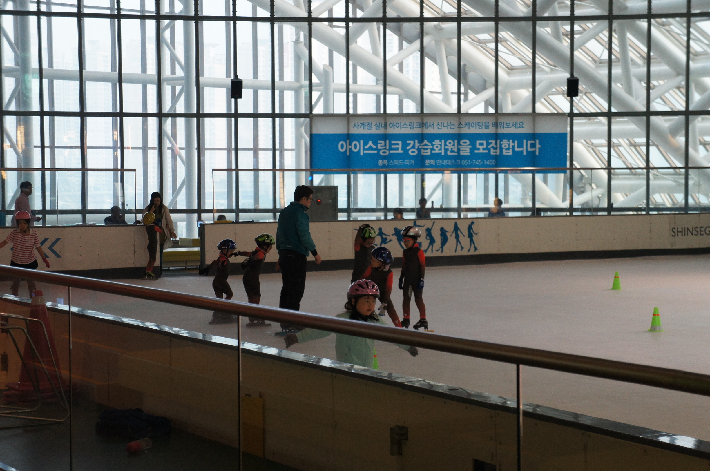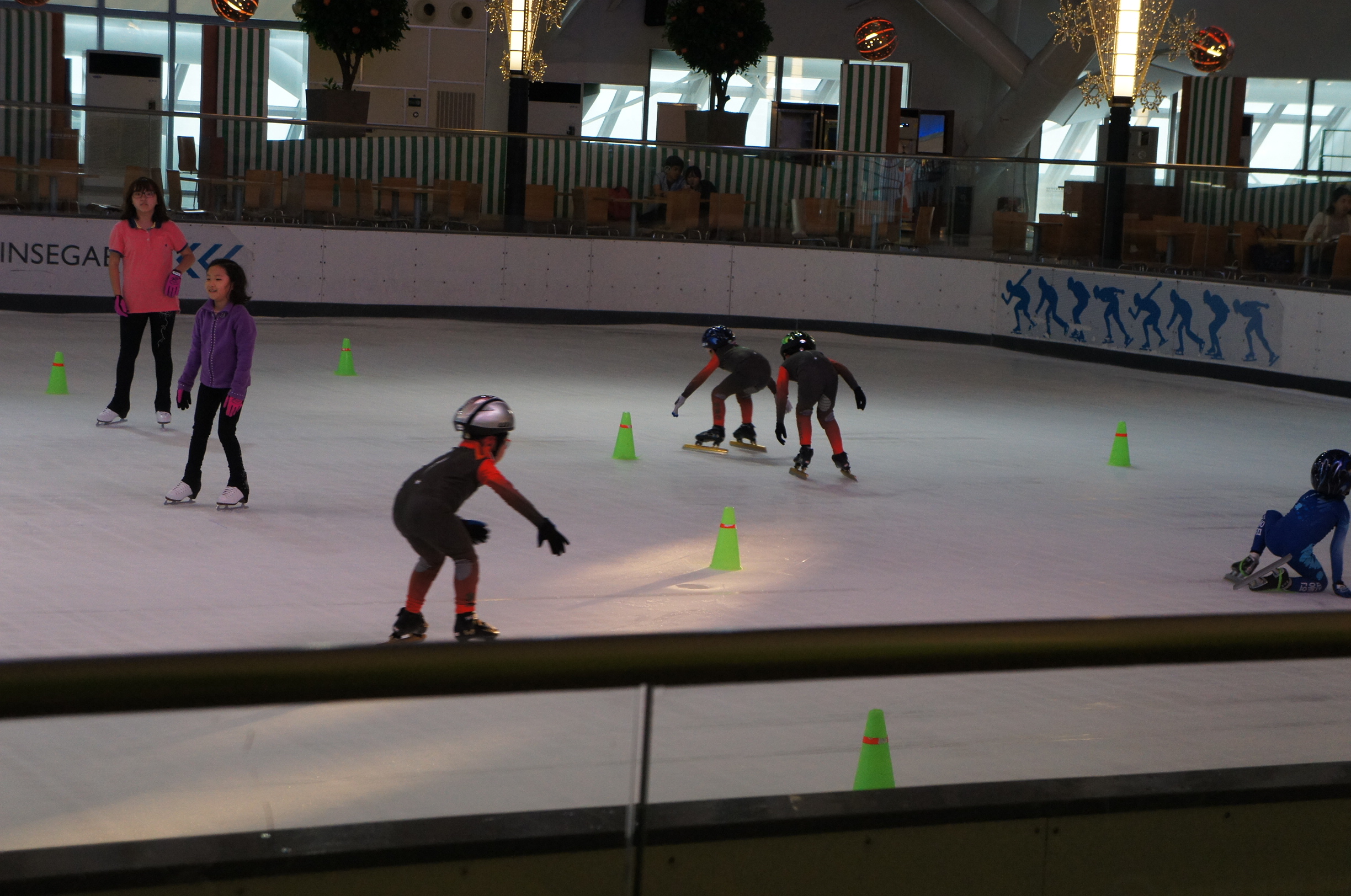 但令人驚訝o既唔係佢哋有幾細個,而係…佢哋學o既係速滑﹗﹗而唔係香港常見o既花式溜冰~~有啲技術好啲o既小朋友真係有適當地擺手,同埋個人彎低落嚟呢~香港冇呢啲係咪因為已經夠晒人多擠逼??