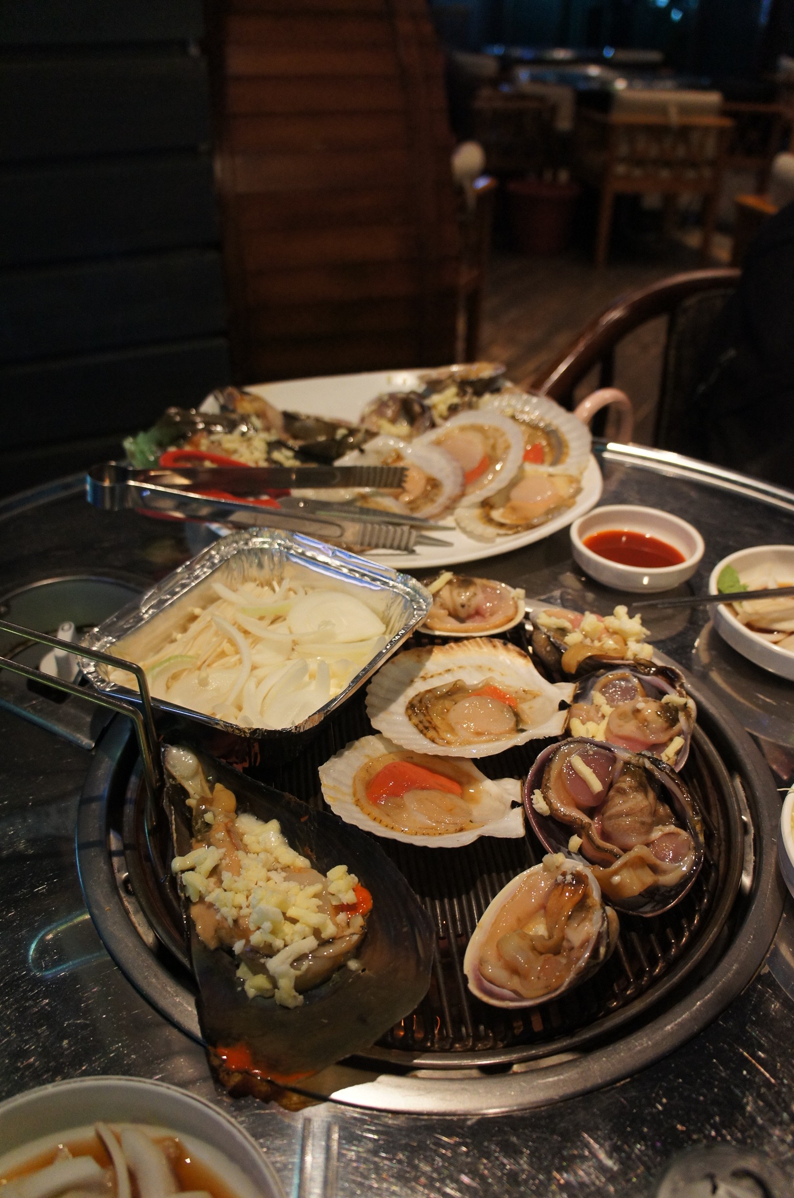 確實仲存在,但生意比起我哋想像中冇咁好,有大量空位,同埋與其話似食烤貝o既餐廳,不如話佢o既裝潢更加似間pub,有得飲啤酒睇波嗰種,因為有長吧枱,有大screen,不過都有烤爐o既枱o既,確實都有客人食緊烤貝,冇去錯~SONY DSC