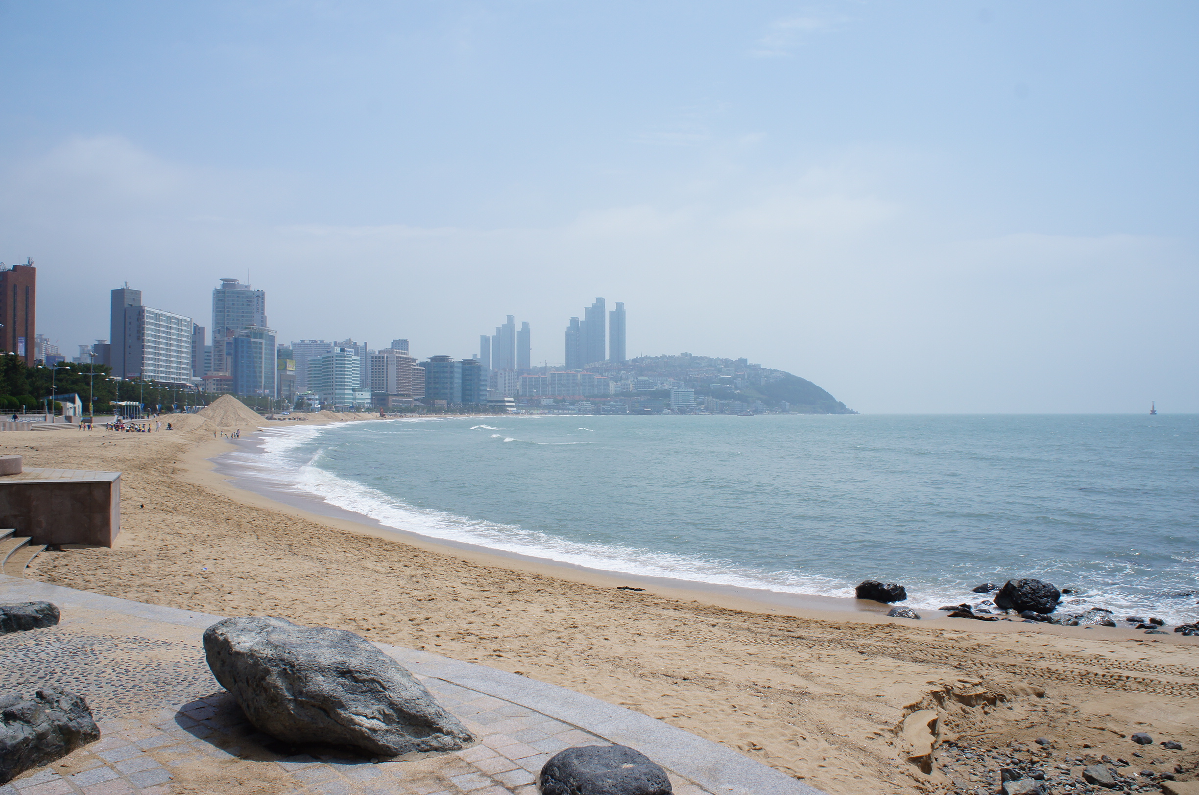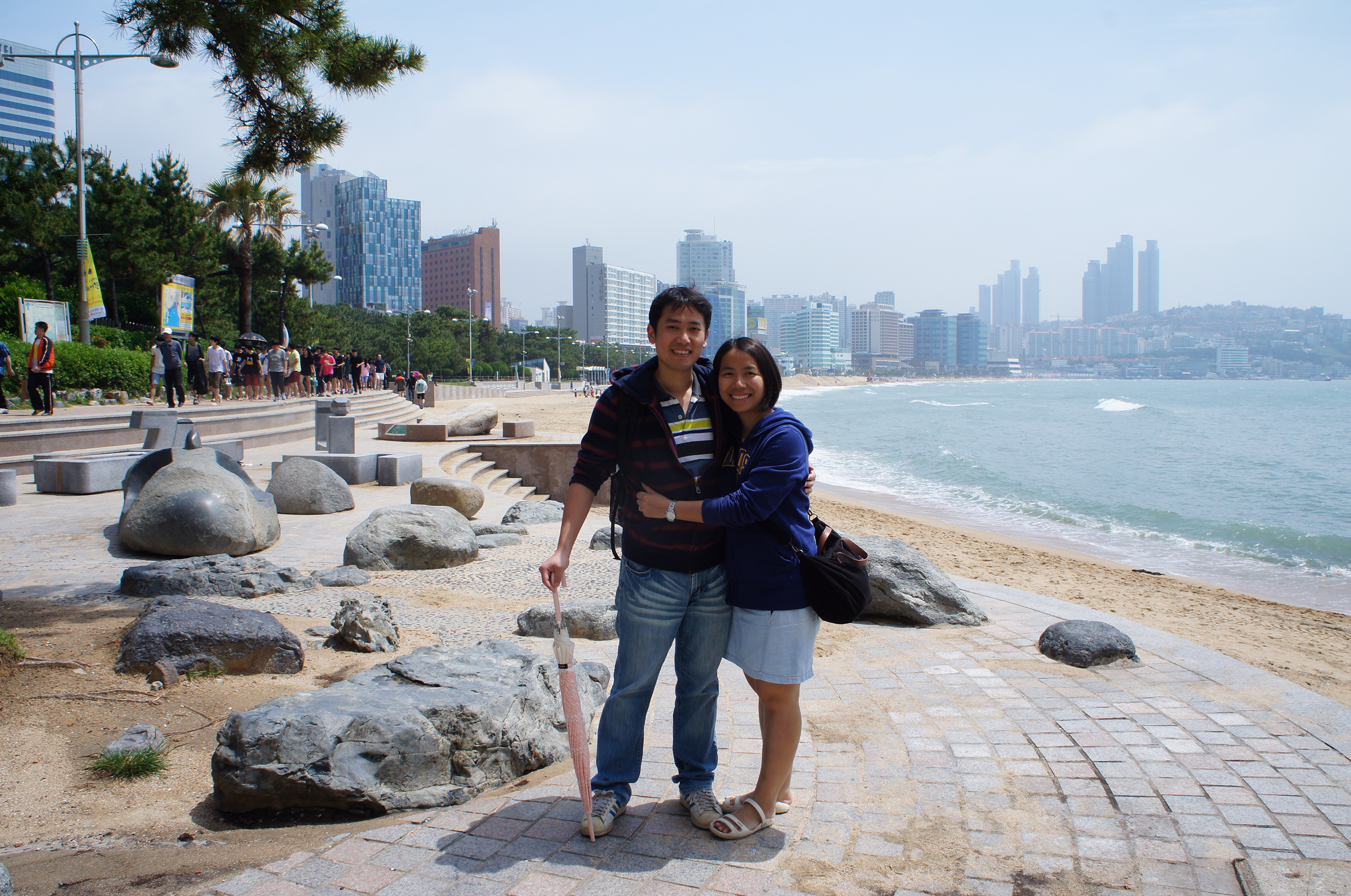 雖然我哋住係海雲臺旁o既Sunset Hotel,但都係去到第五日我哋先第一次踏足呢個釜山最出名o既景點—-海雲臺海水浴場~佢以又長又白又細o既沙灘而聞名,係海雲臺的戀人們入面影到夏日o既景色,有好多美男美女o既海灘,真係好吸引~但呢幾日天氣真係陰陰暗暗,唔落雨都偷笑~