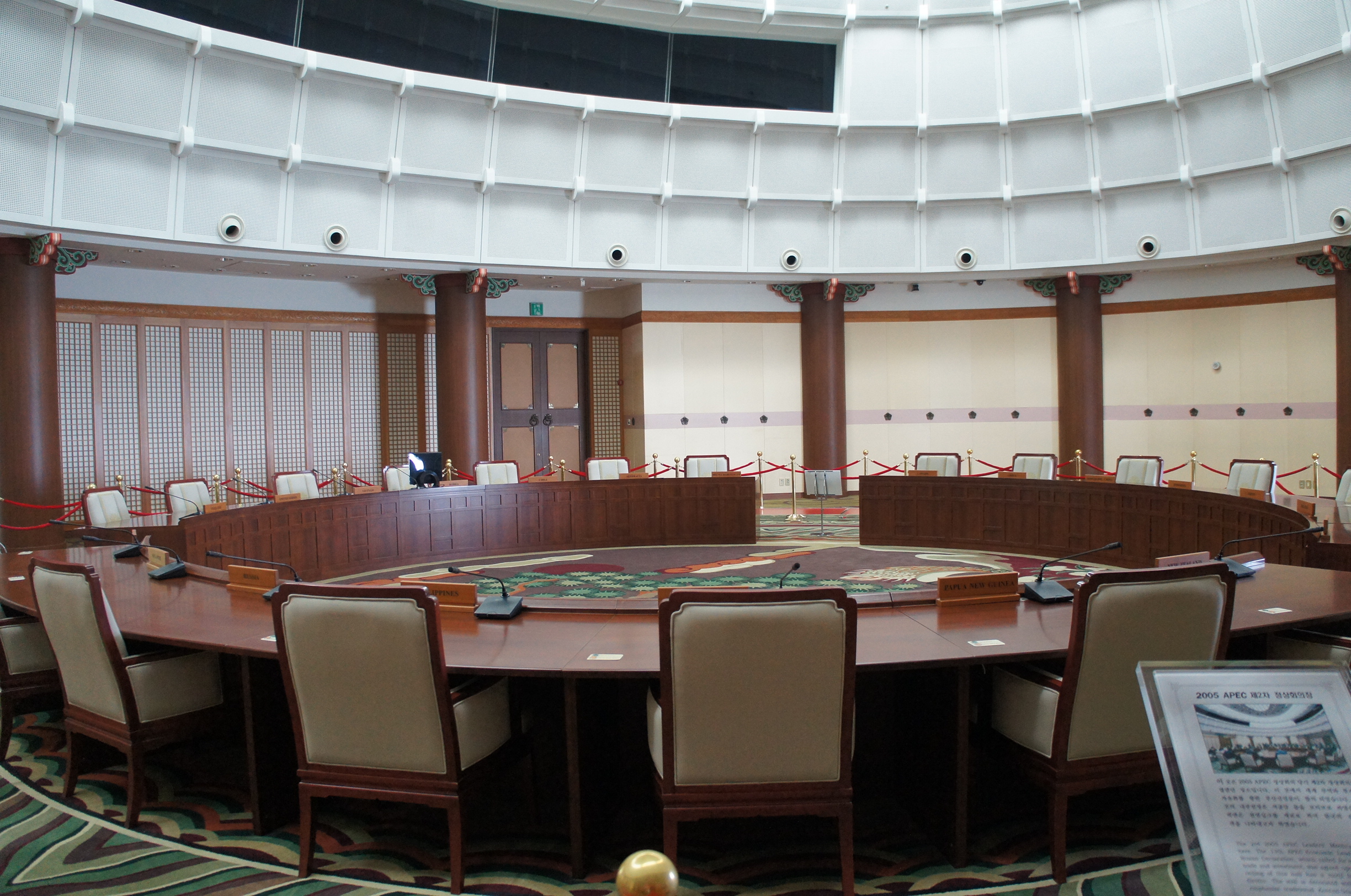 入面有好多關於嗰次會議o既資料,好似參加o既國家啦,有邊個元首出席啦,佢哋嚟時著咩衫啦,有咩食啦,有咩紀念品呀咁~呢度係有段video睇,點解要影個地下?因為你企係相應o既語言腳引,你就淨係聽到嗰個語言啦~