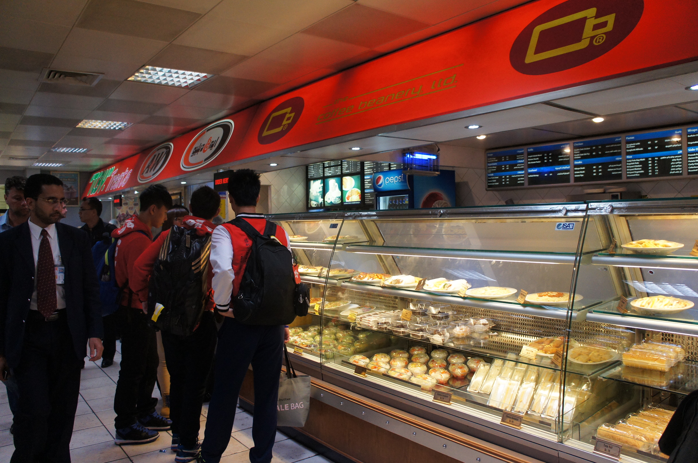 雖然係飛機上食咗兩餐至轉機,但我哋落到地都覺得餓,見有啲時間就去搵嘢食﹗有冇阿拉伯風情o既美食呢?唔係好覺,結果叫咗個wrap~見到紅衫o既小伙子嘛?佢哋係我哋同機o既年輕人,睇佢哋件衫,難道係港隊o既空手道隊?咁後生就做港隊咁叻o既~~回程時我哋都同佢哋搭同機呀,不過係西班牙時就冇撞到過~