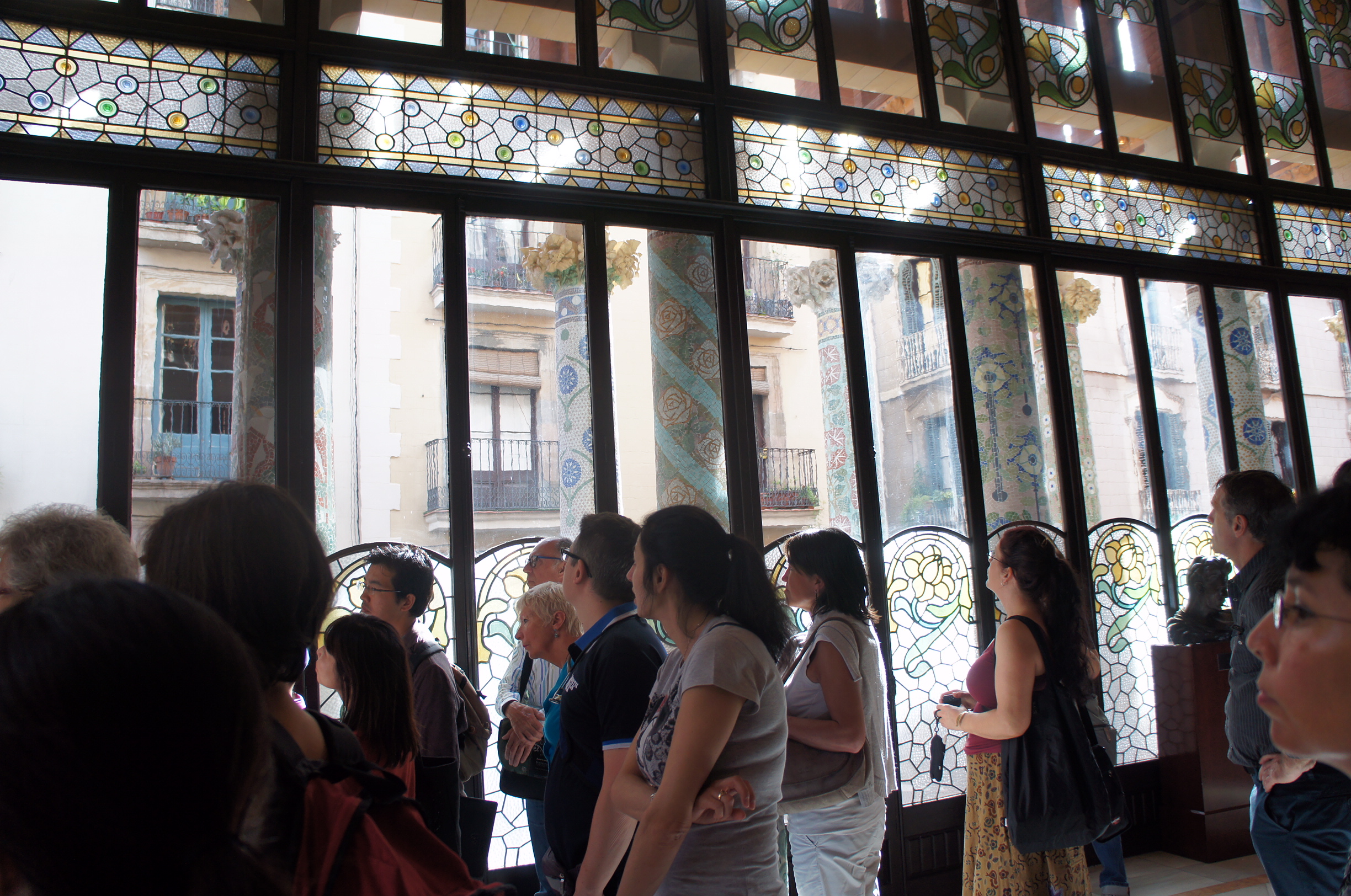 哇,見到條長龍,因為旅遊書講,每時段有限定參觀人數,所以如果嚟緊嗰團full咗可能要等成個鐘甚至要下晝至有得睇,希望ok啦~結果我哋join o既英文tour都好快出發~排隊時有人派啲小冊子,推介今晚係Palau進行o既西班牙結他表演,既然夜晚都冇特別plan要做咩,不妨買飛嚟睇下啦,順道真正感受下呢個表演場地o既魅力嘛~