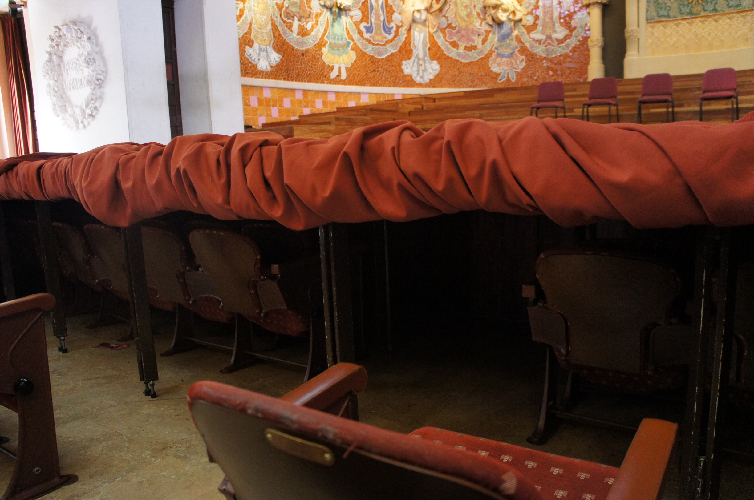 好,開始guided tour了,帶我哋o既導賞員講o既英文充滿catalan口音,要好留心聽丫~我哋係呢個小練習廳先聽聽關於Palau o既基本o既資料,睇咗一段video,之後就正式邊行邊睇了~SONY DSC