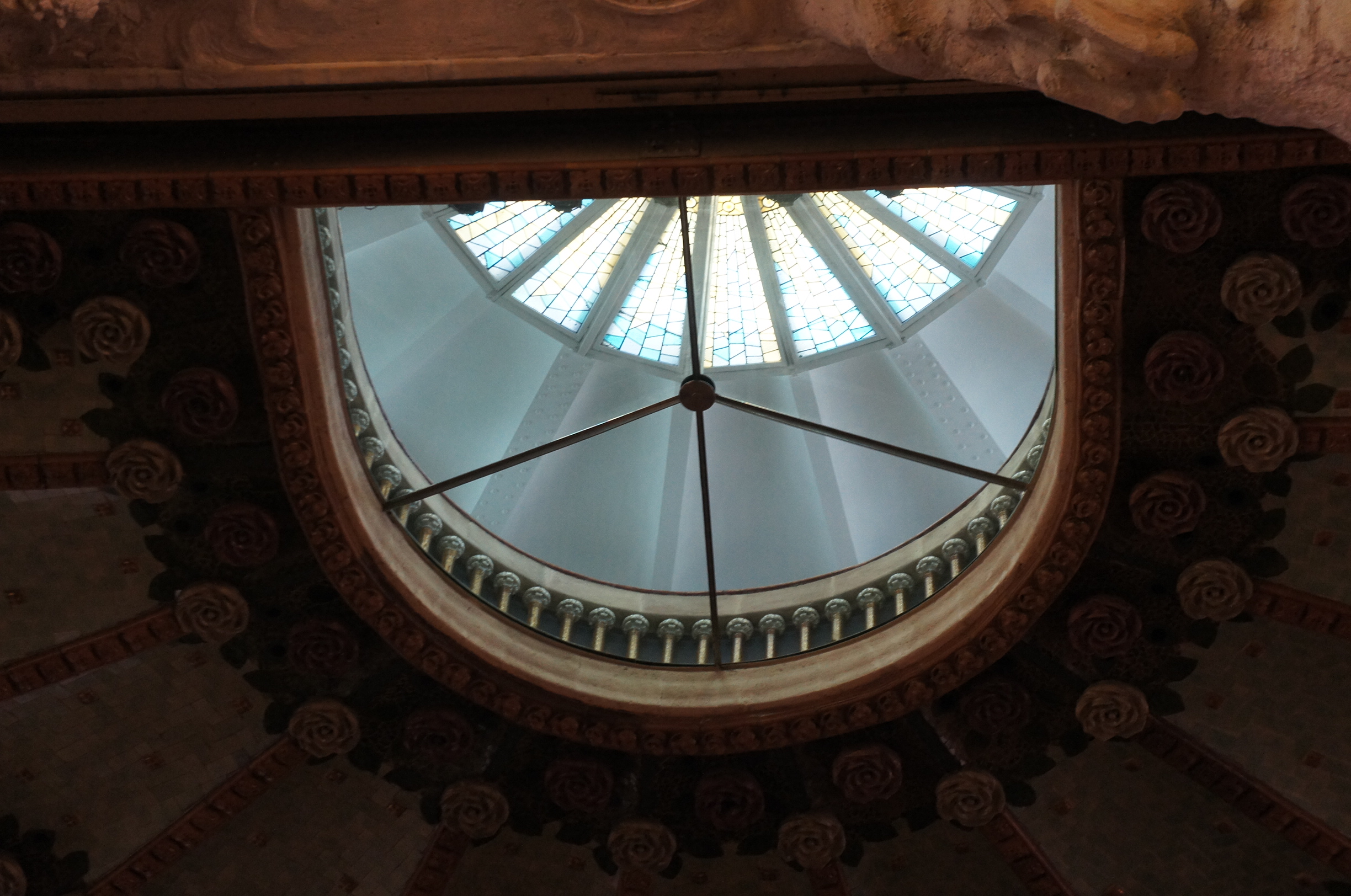 左下嗰個彩色玻璃天花,其實係代表樹林裡面o既太陽,以前啲音樂會多數日間舉行,真正o既陽光透過彩色玻璃入嚟,就真係會發光了~至於天花板o既玫瑰花,每一朵都係陶瓷製,而呢個音樂廳現代化、要安裝冷氣o既時候,啲出風口就好巧妙咁俾啲玫瑰花掩飾咗了~SONY DSC