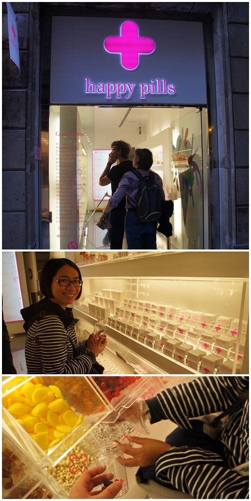 食飽飽行出嚟見到間叫人開心o既鋪頭呢,叫做Happy Pills,其實係經過包裝o既糖果店,盛載o既容器係藥樽(?﹗),唔同size唔同價錢,你裝得落幾多就睇下你o既策略好唔好喇~我哋見靚靚地,糖果款式又多,都買咗嚟做手信呀~