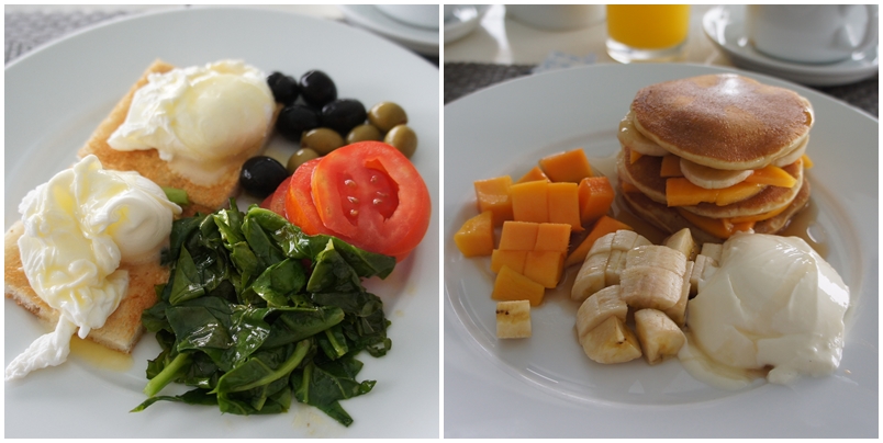 我哋叫咗左邊嘅煎蛋+菠菜沙律+醒胃嘅橄欖同埋右邊嘅芒果香蕉pancake配yoghurt,都幾好~