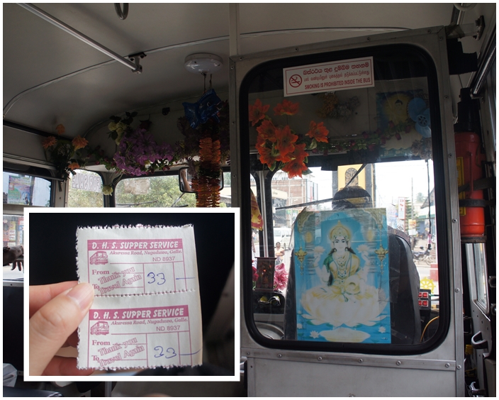 我哋行完海龜hatchery就搭巴士出去Galle啦,今次都好似係呢個trip以來第一次搭tuk tuk以外嘅公共交通工具,事關只有一條路去Galle,方向啱就肯定唔會迷路啦~你睇我哋張車票,每張盛惠33 rupees,但問題係3 rupees咪好濕碎,冇錯﹗個售票員並冇收我哋嗰6 rupees,似乎都係四捨五入、多除少補,咁都得?﹗