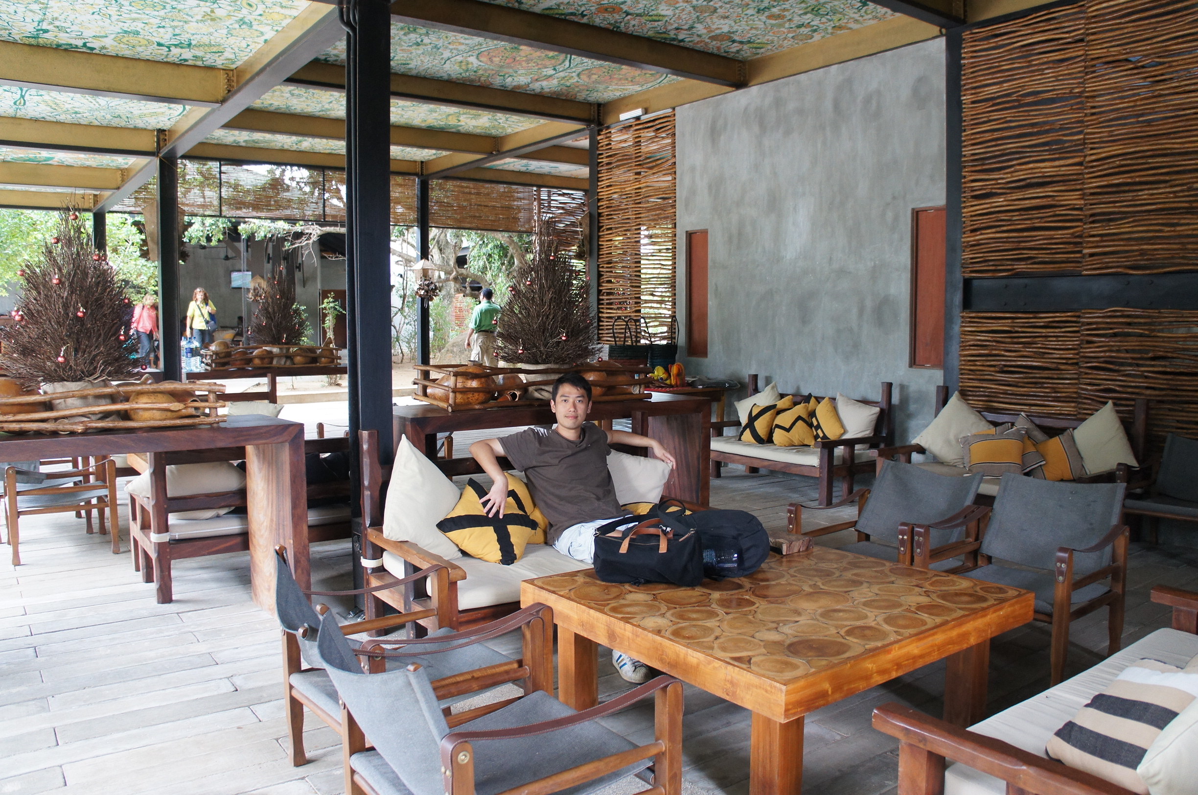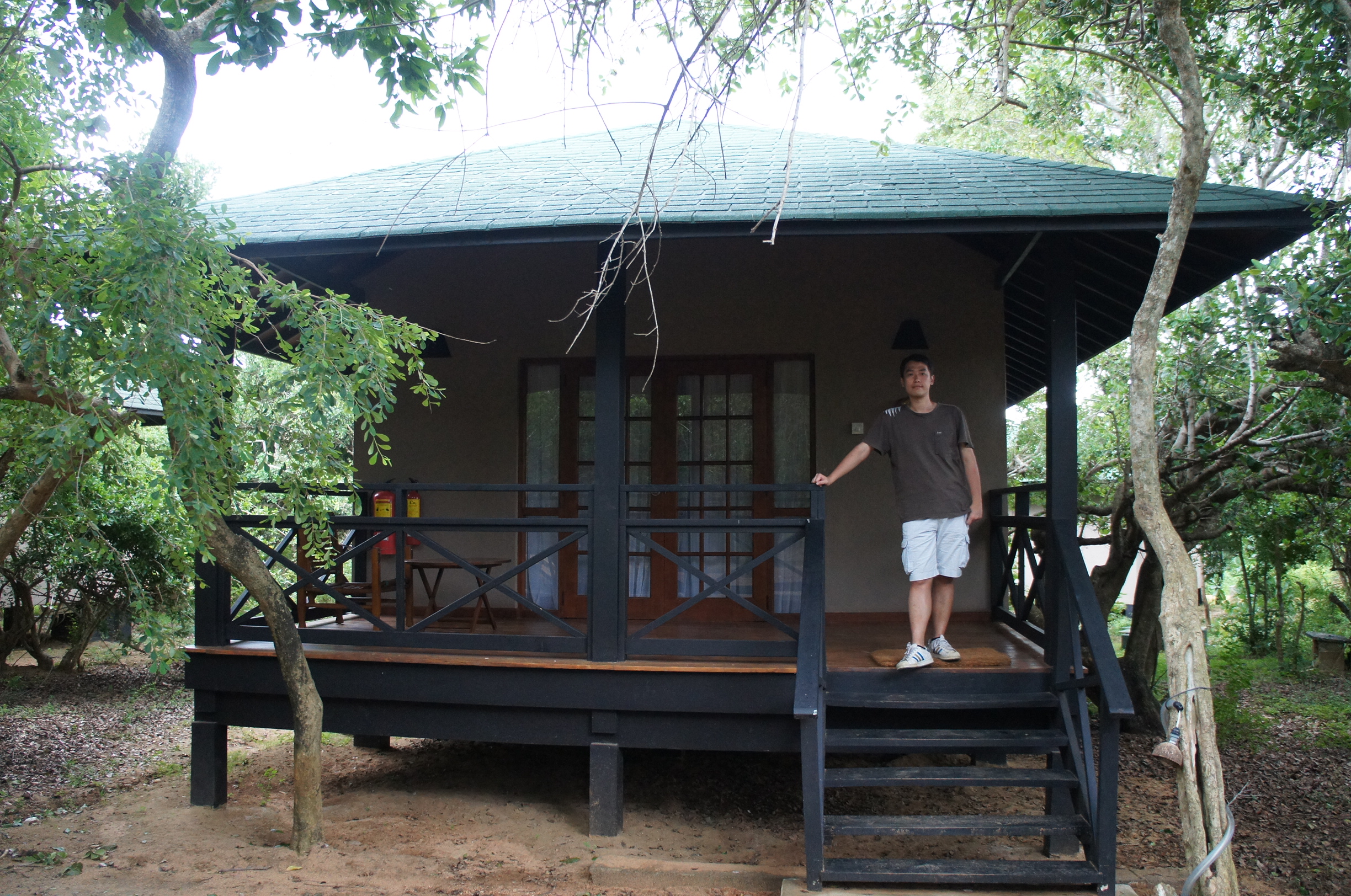 下一張相已經係幾個鐘之後嘅下一間酒店了﹗今日都花咗一個早上搭車,由Talpe去位於Yala National Park旁邊,我哋要入住嘅Chaaya Wild Yala有176公里呢(啱啱用Google Map)計算過,即使最順利都要三個幾鐘,但只計距離咋喎~我哋一早搵咗Talpe嘅酒店櫃枱幫我哋預約司機,最初講係講去Yala,司機就assume咗係去Tissamaharama,事關大多數去Yala National Park嘅遊客都係Tissa落腳,嗰邊有多啲酒店選擇,但今次我落重本揀咗住Chaaya Wild Yala,係因為佢就正正係國家公園入口旁邊,係agoda.com啲人comment都話酒店簡直就似係野外入面,小屋四周都好多小動物,咁吸引所以貴啲都住囉~但原來Chaaya Wild並唔係咁多人識,個司機去到嗰頭都要問路,而且比佢想象中遠好多⋯入去條路仲好崎嶇難行,凹凹凸凸嘅泥濘路,拋下拋下咁,但嗰架車只係一架普通嘅客貨van,真係有少少委屈咗佢同司機,所以司機都老實同我哋講收費要加碼,因為遠咗好多公里,佢成本都真係高唔少嘅,我哋都冇異議嘅~SONY DSC