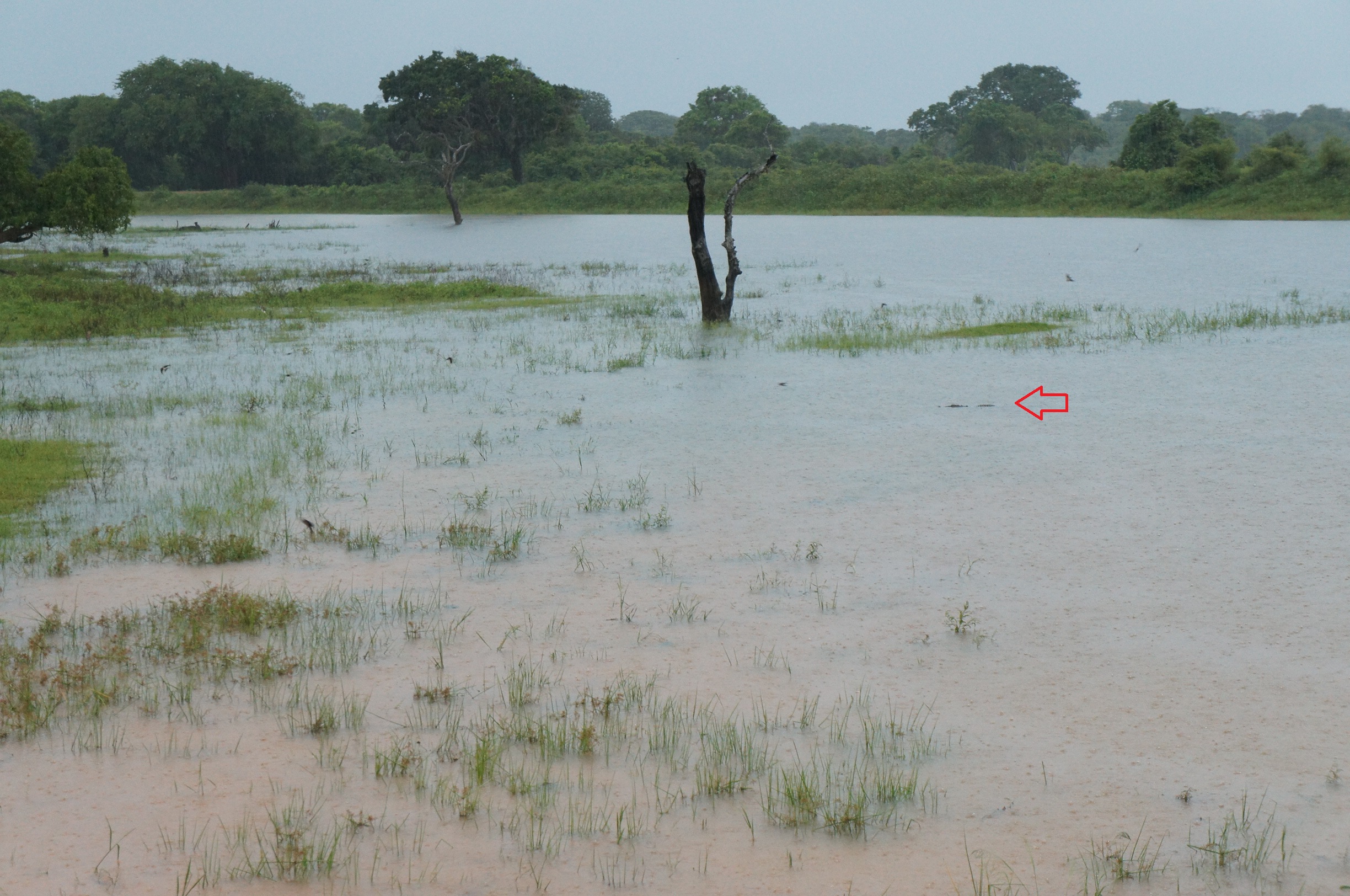 司機兼導遊叫我哋留意下池塘,我唔加個箭嘴落去大家一定唔知我講乜,我指住嗰條線其實係鱷魚嚟o架﹗﹗佢半浮係水面,對啲鹿虎視眈眈呢~