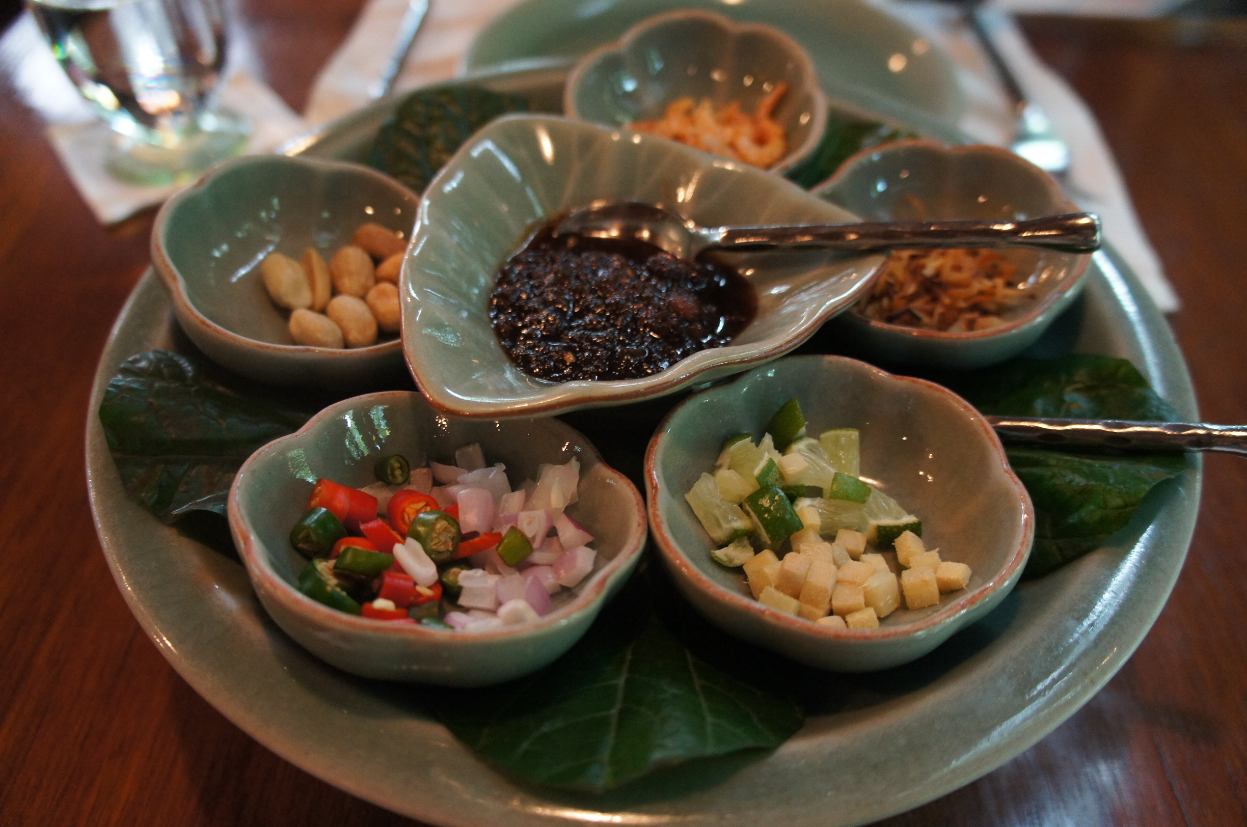 呢個頭盤係送俾我哋食的﹗上番佢個官方網站至知叫做meang kam,我哋對住呢個似全盒o既東東唔知點算,waiter教我哋要用葉子卷成cone狀,放啲粒粒落去包住食,見啲粒粒都係味道強烈o既辣椒呀、蒜呀、青檸呀咁,合埋一齊又出乎意料之外o既調和bor~好推介﹗