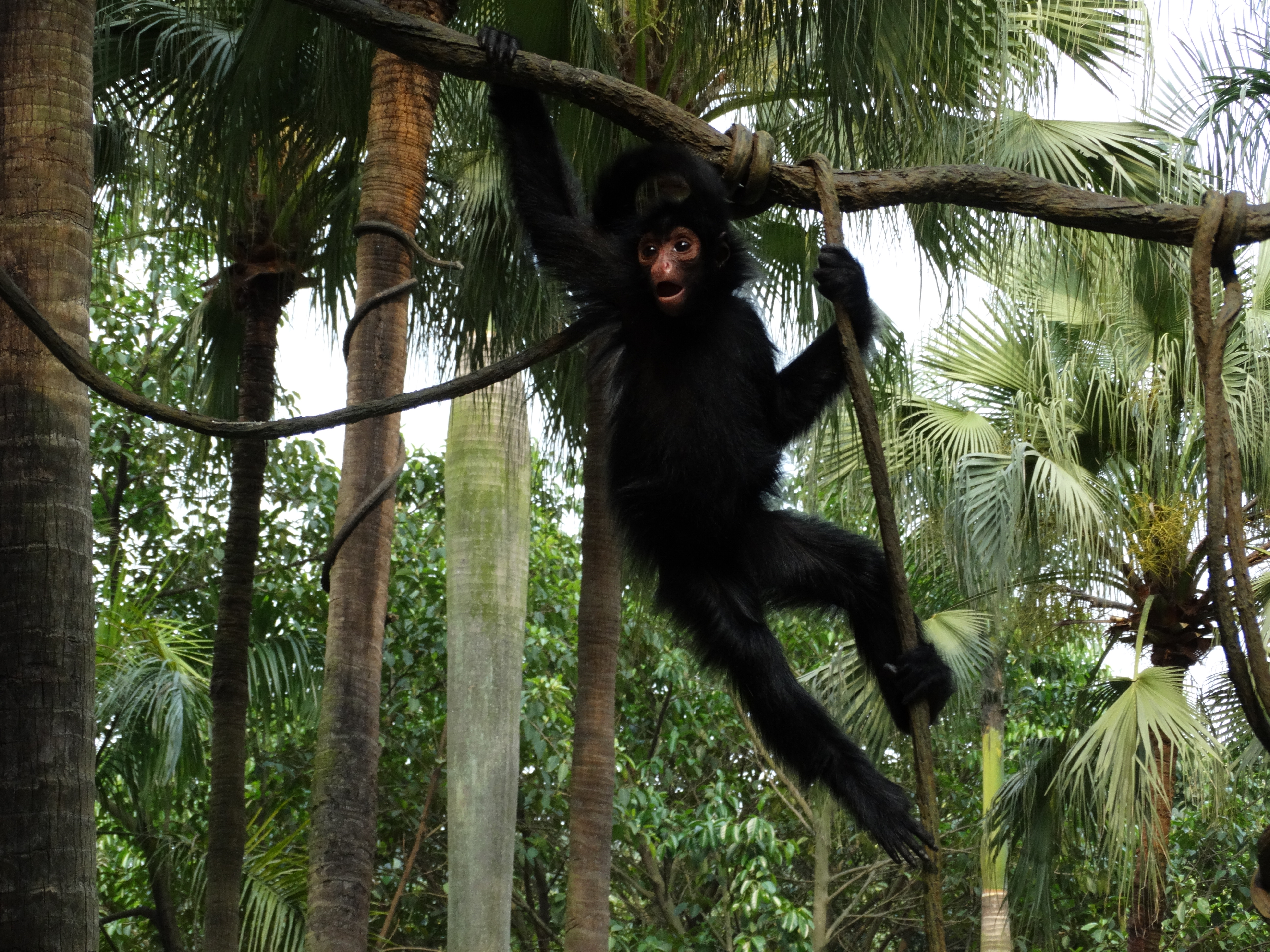 呢隻蜘蛛猴都叫人印象難忘,因為佢身手非常矯捷,除咗手腳四肢之外,佢有第五肢﹗佢o既尾巴好靈活同埋好好力呢,夠力可以拉起成個猴o既重量呀~究竟佢爬嚟爬去係向遊人炫耀定係真係天生咁佻皮呢?