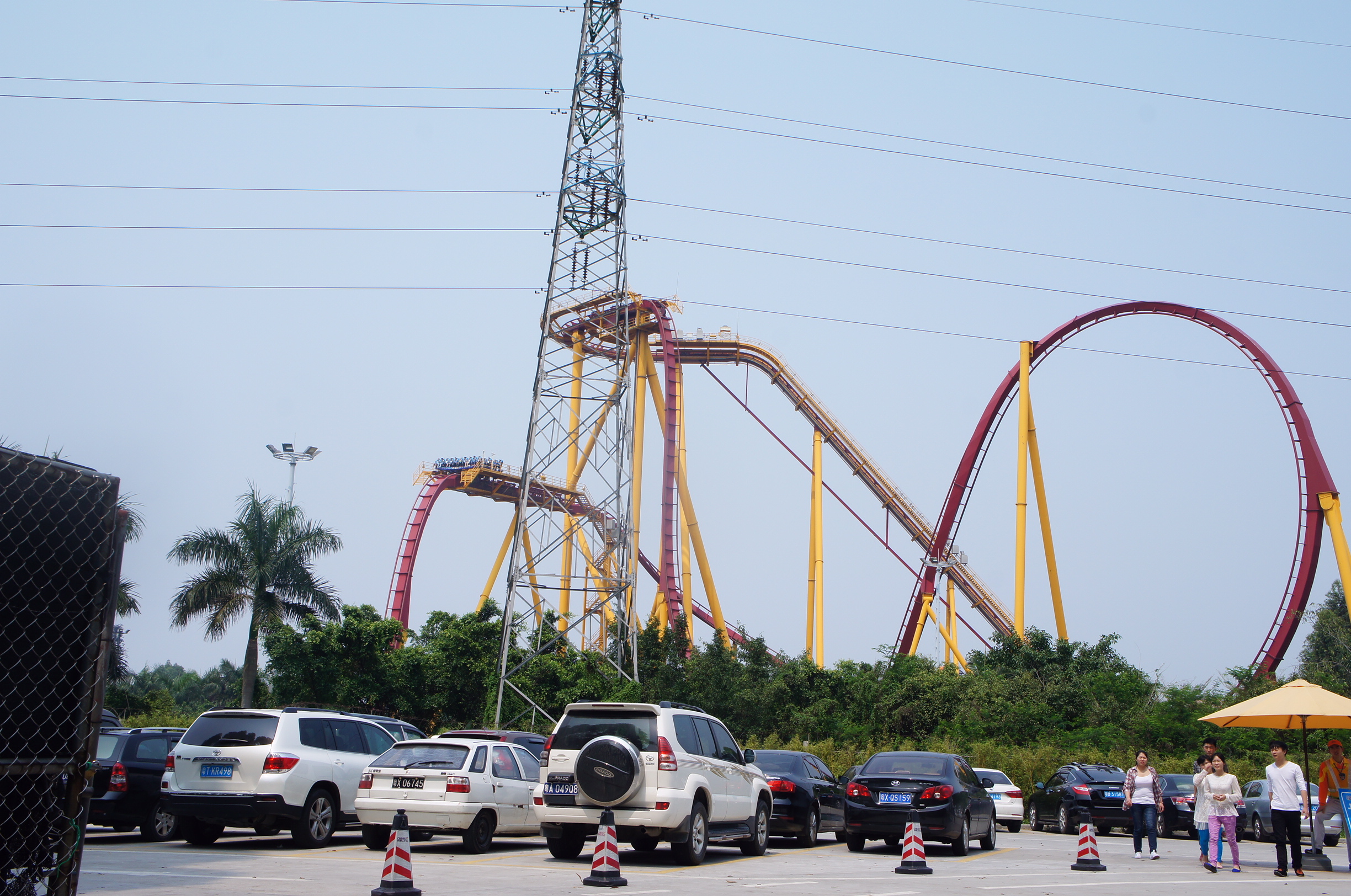 我哋進入度假區後,其實有shuttle bus可以免費來往幾個景區,我哋見都唔算太遠,就決定步行過去野生動物園,途中就經過歡樂世界喇,吸引我哋目光係因為聽到尖叫聲,哇,呢個過山車嘛,由頂衝落嚟基本上係垂直囉~我其實對於玩機動遊戲都ok的,不過隨住年紀大咗,對於挑戰自我,甚麼極刺激,要贏其他人o既心態已經唔存在,我成日都用「夢幻遊樂園」PC game嚟做比喻,今時今日o既我,要求o既遊戲係歡樂度高、嘔吐度低、反而刺激度唔重要,每次要舉例時就要講之前去大阪Universal Studios時嗰個過山車喇(請參閱:25-11-2009:大阪白浜day 2(part 1).環球影城之日)﹗