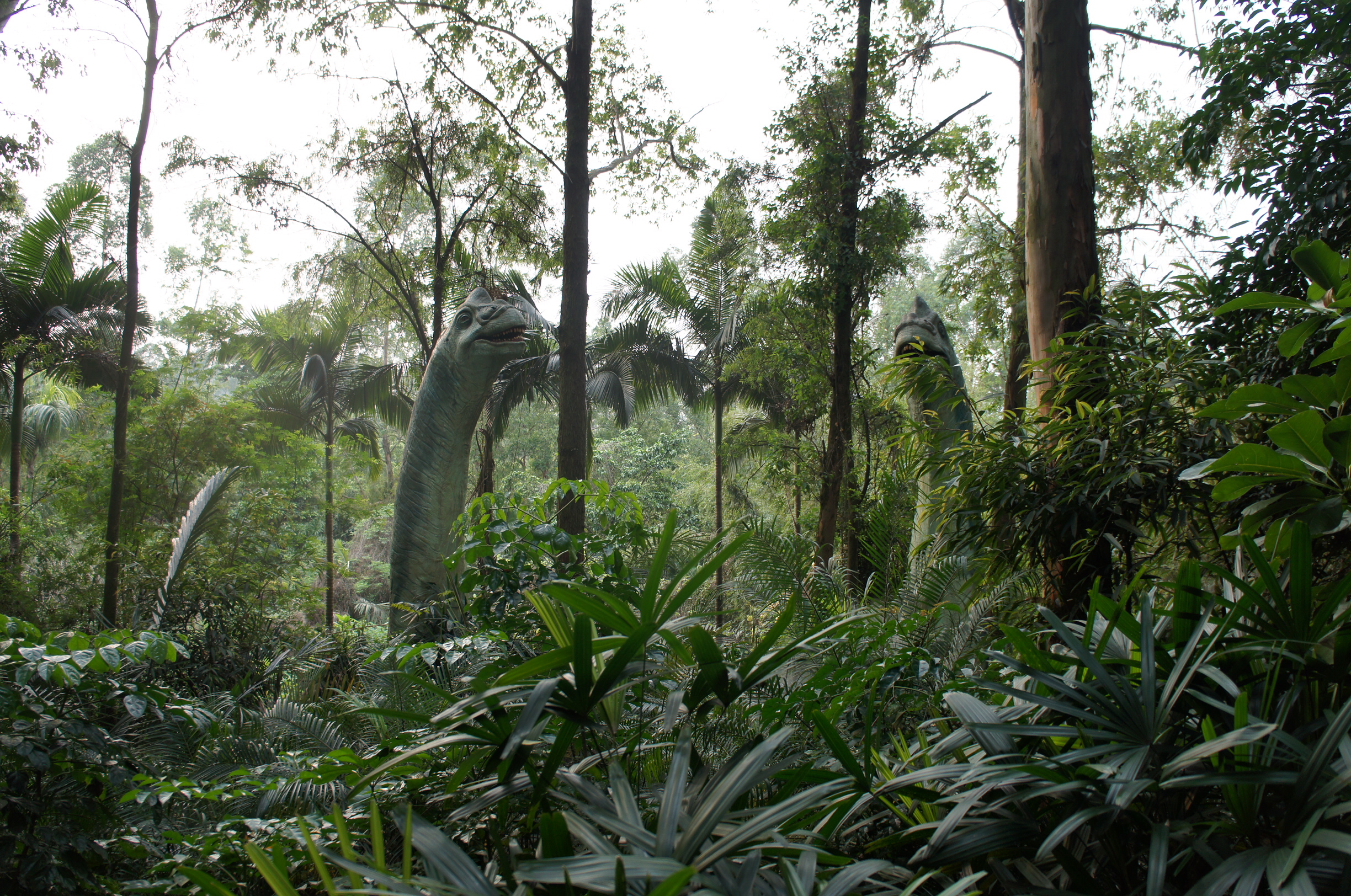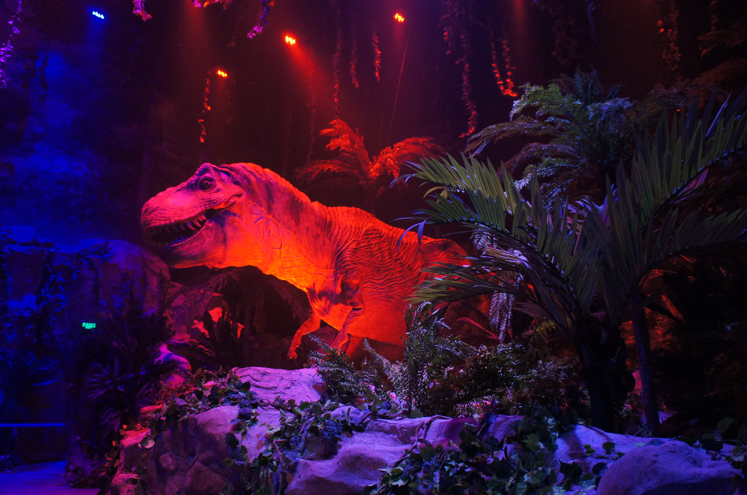 我哋行咗入呢個園區之後都不禁納悶,咁多真實o既動物們俾我哋睇,點解要去睇假嘢?不過兩秒後就釋懷,事關我哋最近有去睇過科學館o既「巨龍傳奇」,對於這些年來啲機械恐龍o既巧妙製作o既進步印象好深刻,香港嗰個展出同好多國家合作,啲恐龍模型唯肖唯妙,但今次睇o既恐怕係100% made in China吧,而且係幾年前o既貨色,居然都幾神似噃~入到去呢個加埋啲閃光效果,啲細路都嚇到wee wa大叫呢~