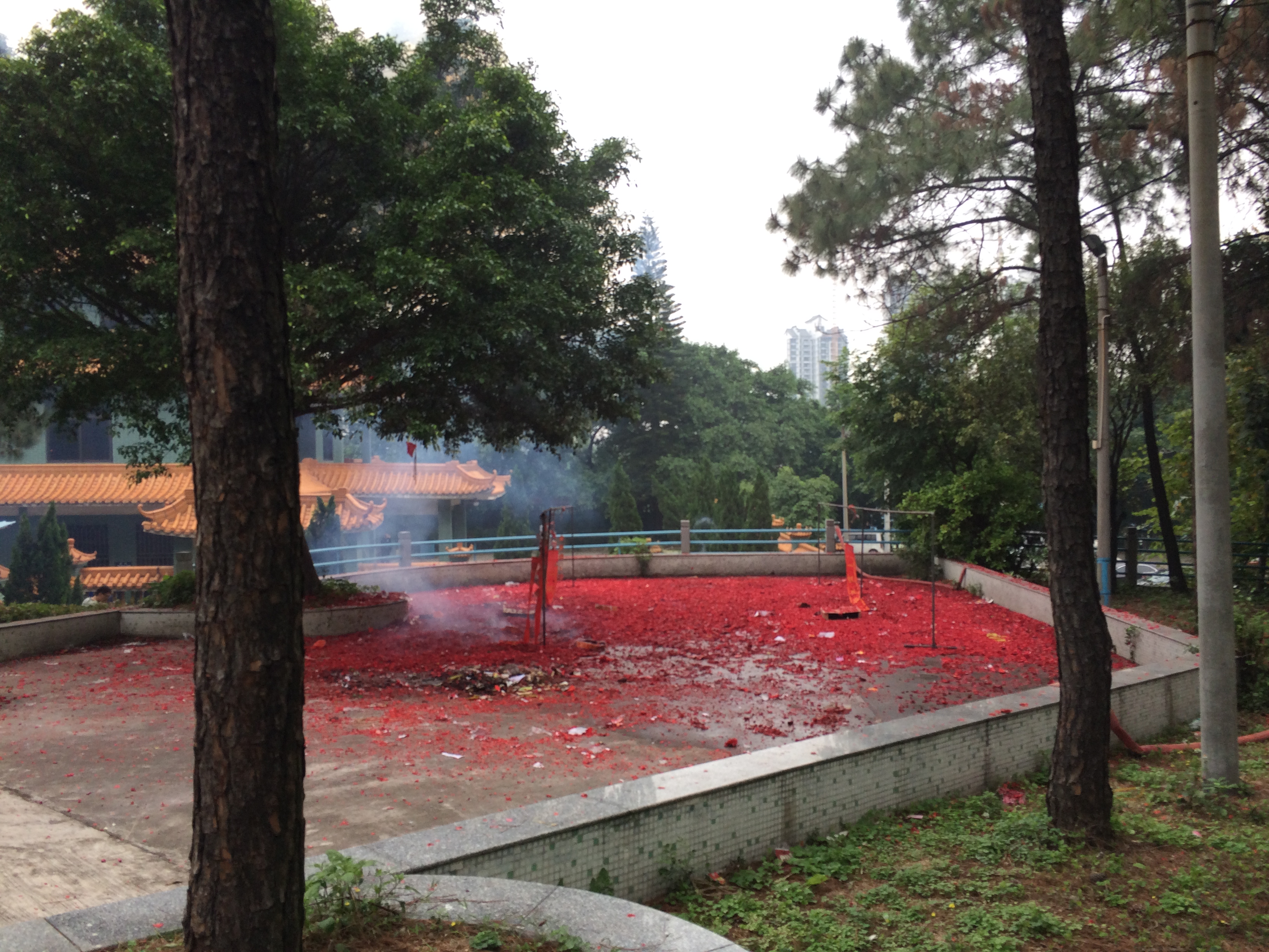 天下著微微雨,我哋抵達墓園了,外面有燒炮竹o既地方,係咪要大聲話俾先人聽,我哋嚟咗喇?﹗定係要顯示子孫o既繁盛呢?
