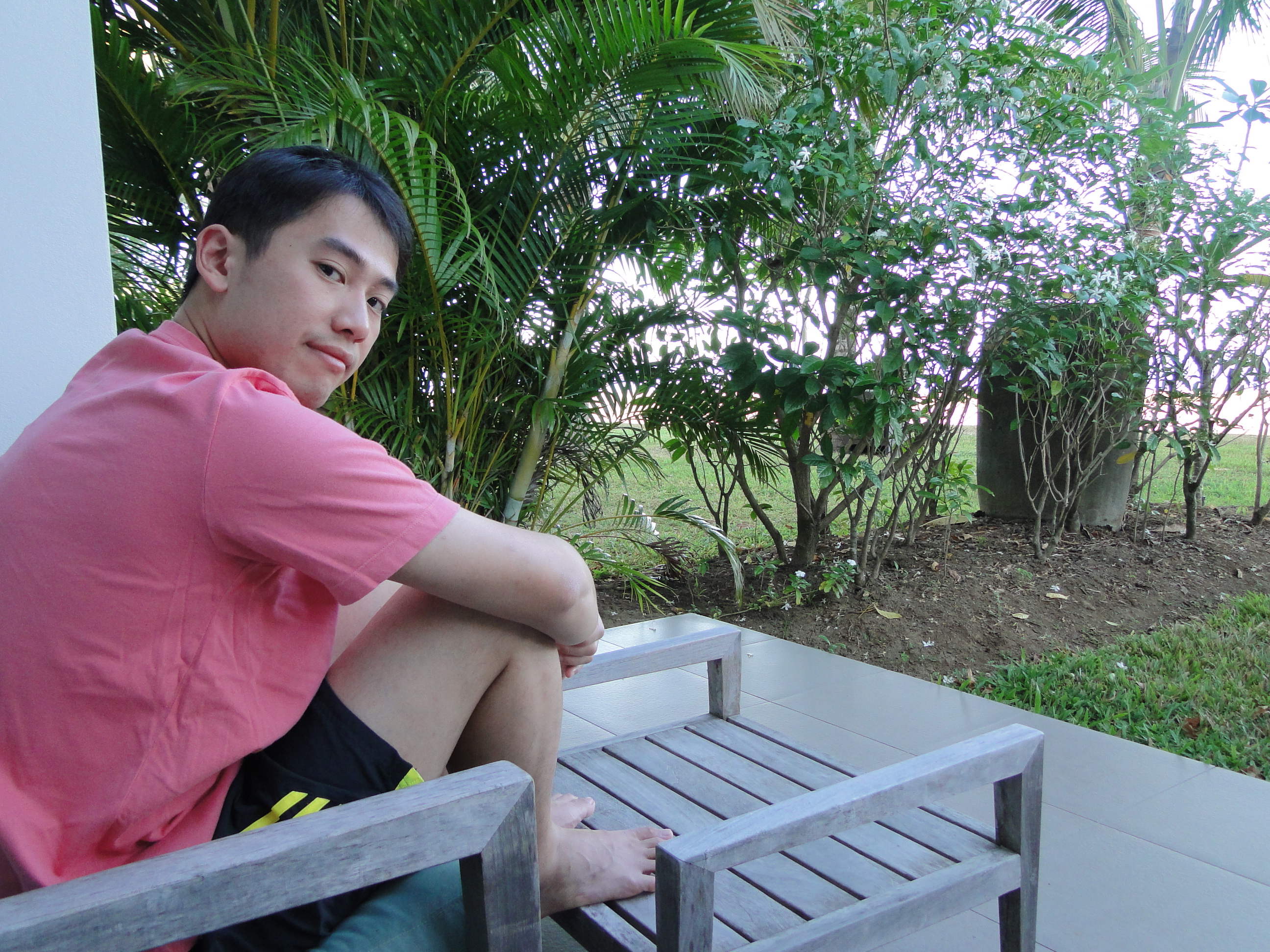 坐下都觀賞到美麗事物﹗係Fiji,最常見到嘅花係雞蛋花同埋大紅花,所以酒店房間的佈置啦、員工別係頭髮旁邊嘅啦,多數都係雞蛋花,你都想戴下花嘛,係雞蛋花樹下面好容易就可以執到靚靚的了﹗因為呢啲花係咁普遍,買嘅紀念品、圍巾嘅花樣你都會見到佢哋~DSC03176
