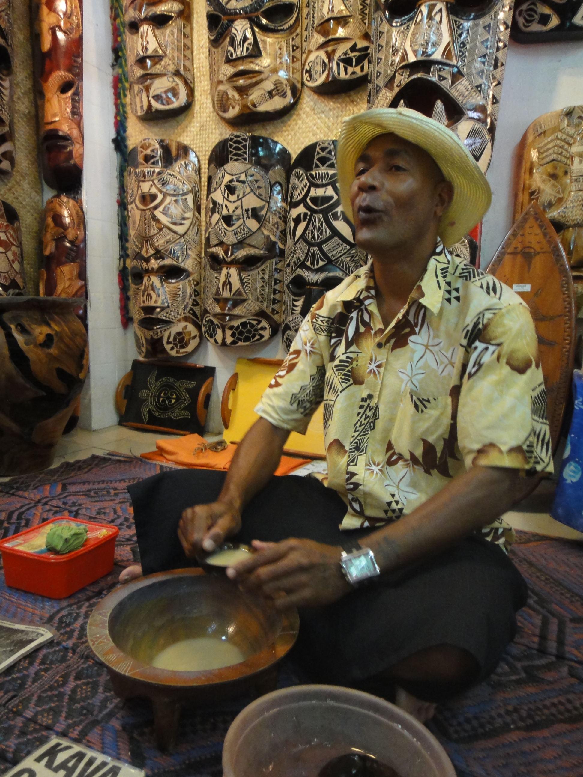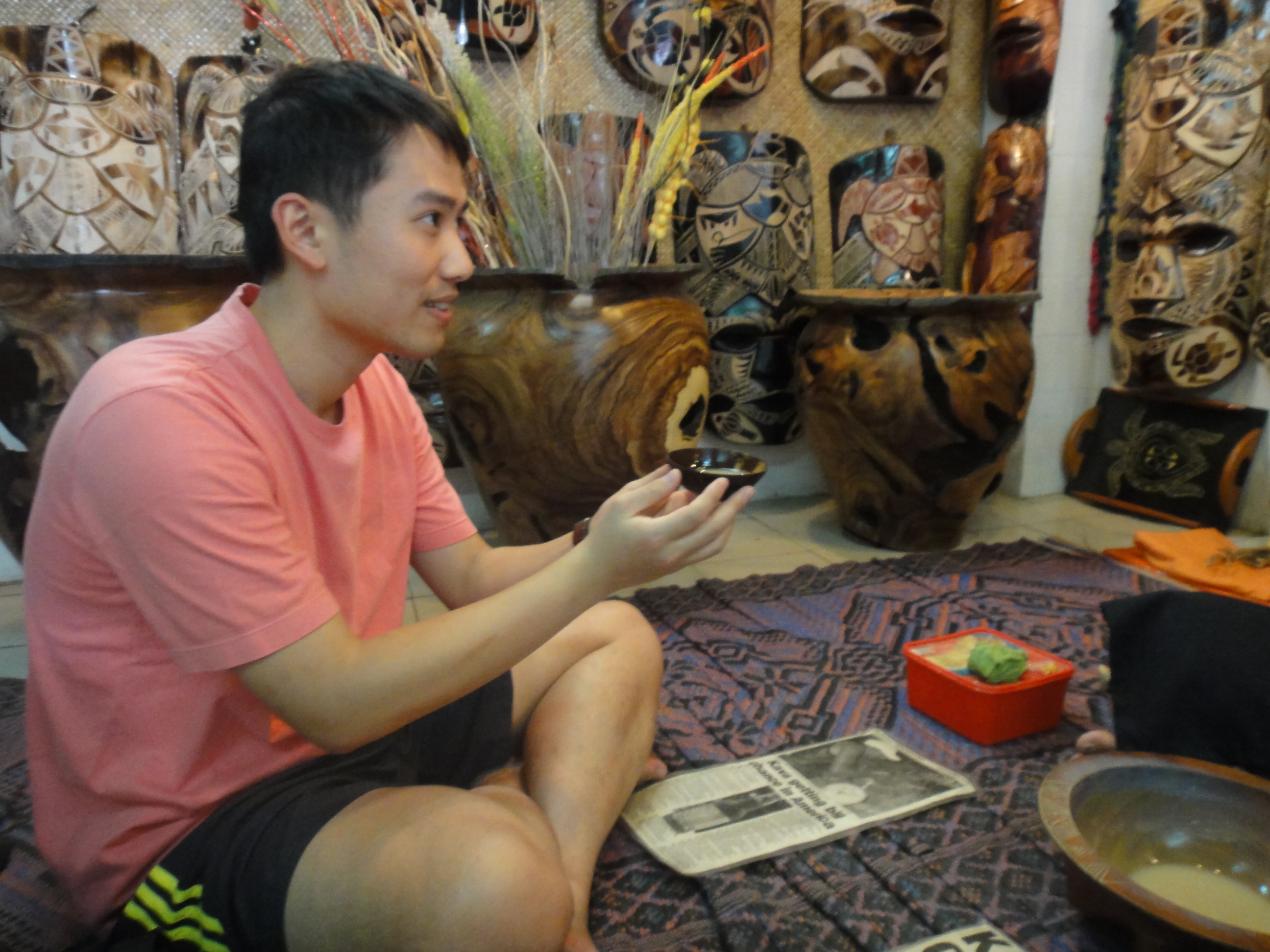 我哋入咗間工藝店參觀,有個叔叔好熱情咁招呼我哋入去,話要招呼我哋飲kava,歡迎我哋喎~DSC03207