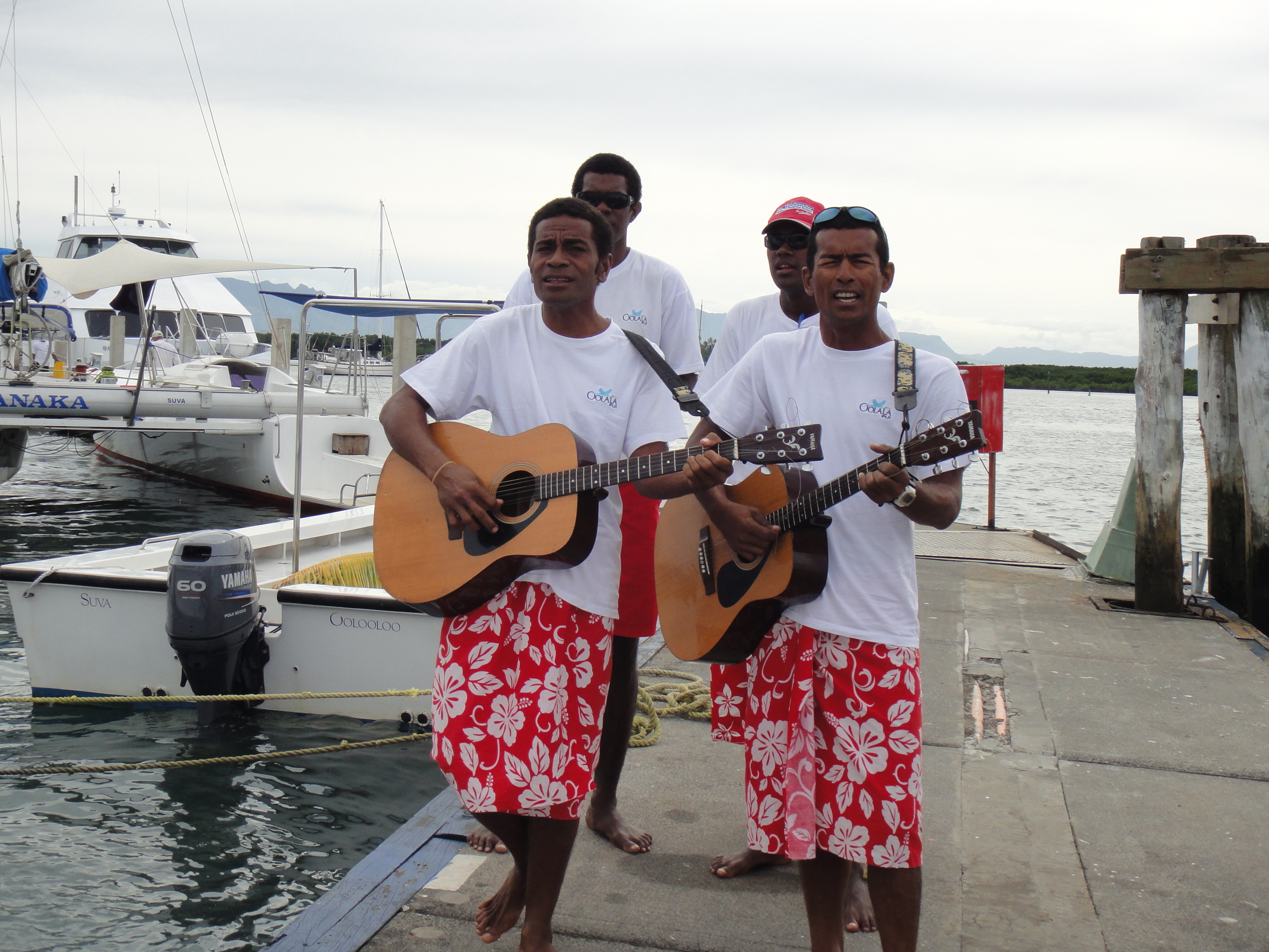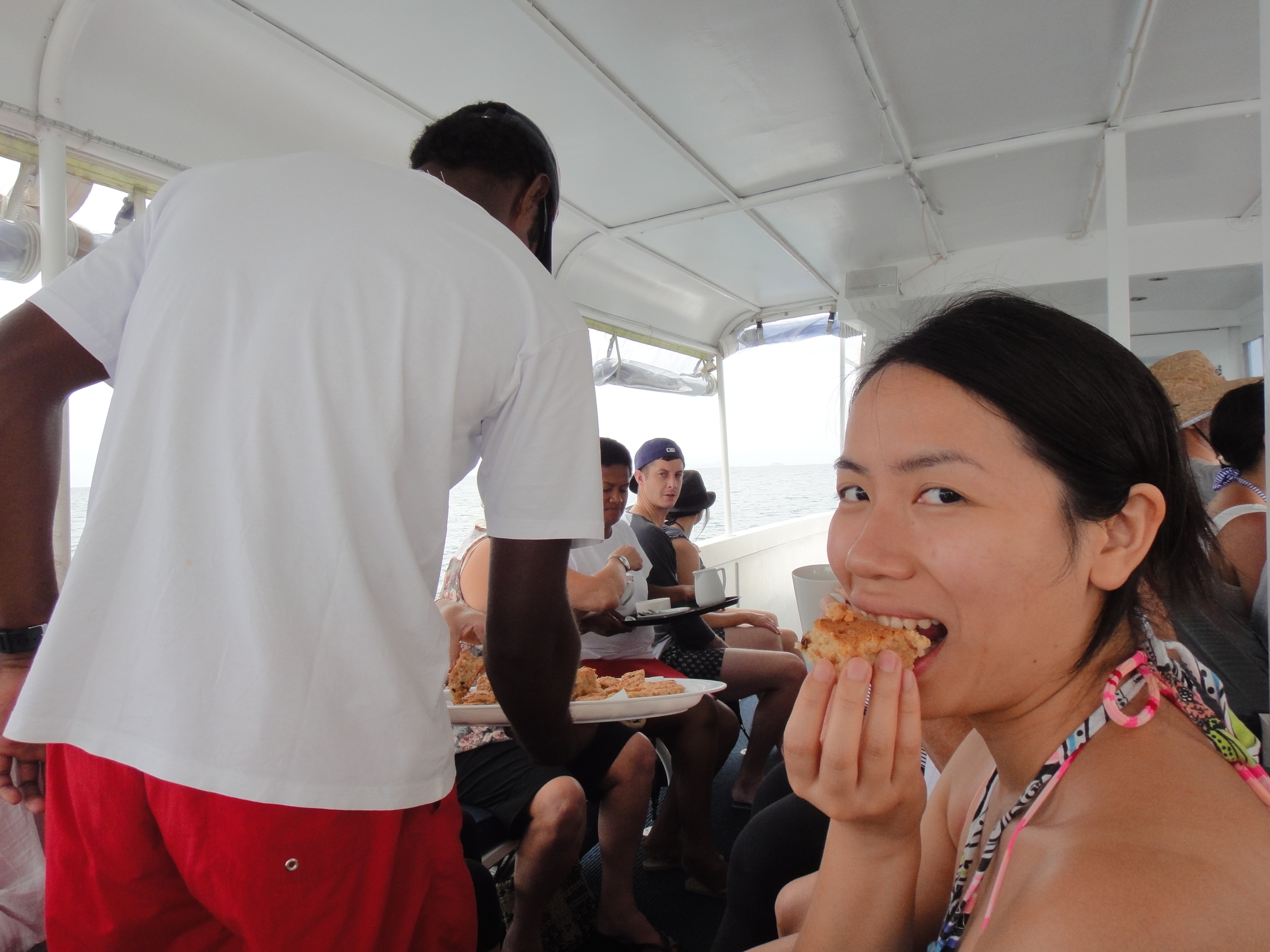 我諗係Fiji出海同係其他陽光與海灘嘅國家相比,最大嘅分別可能就係斐濟人熱愛音樂,而且唔吝嗇同人分享﹗我哋上船時就有四人組唱住歌歡迎大家了,充滿住熱鬧歡樂嘅氣氛呢,腳步都輕快起來~佢哋係咪遊艇專門雇用嘅音樂人?nonono,佢哋既係船員,又係服務生,又係去到小島嘅示範表演人員,我唔記得帶浮潛係咪佢哋了,總之,彈結他唱歌只係任何一個斐濟人嘅基本技能而已~但係好好聽,好想問下佢哋有冇出CD囉~