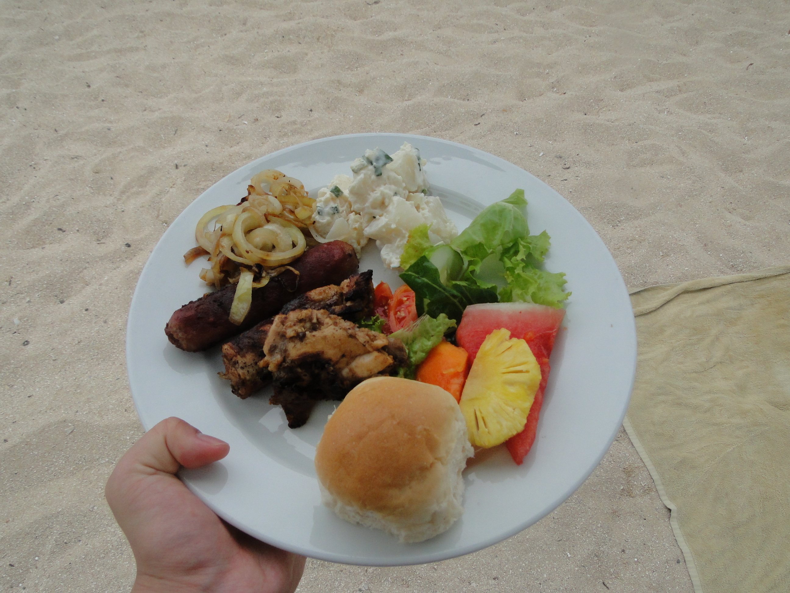 開餐lu開餐lu~自助形式,有沙律、有烤肉、有水果、有麵包,仲有無限量供應嘅有酒精與非酒精飲品,我都試下Fiji beer啦~