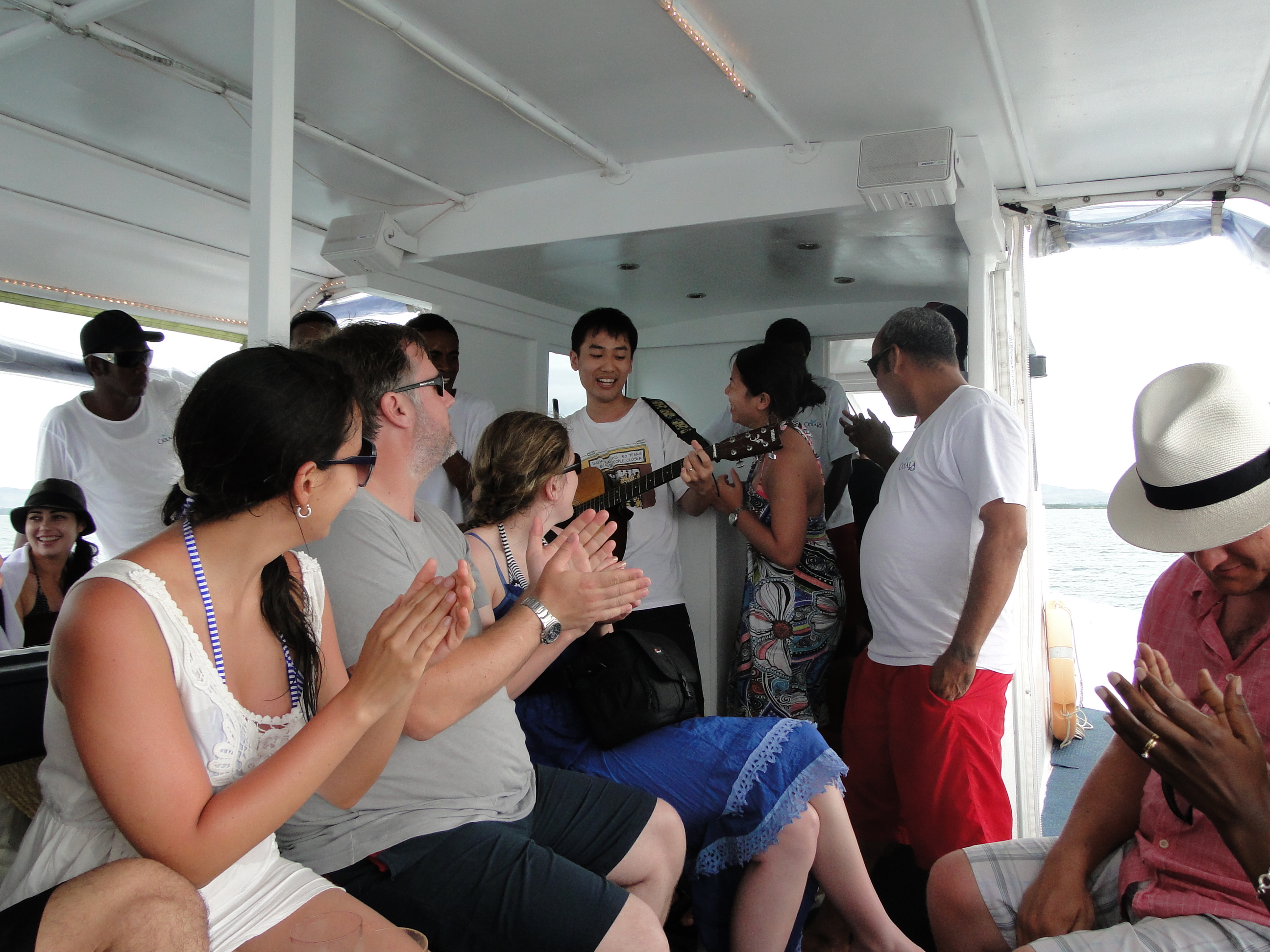 大家都筋疲力盡+曬燶晒啦,係時候回程咯~回程時依然樂韻悠揚,Fiji人真係好識搞啲歡樂氣氛,佢哋叫我哋每個地區嘅人士都獻唱一曲,Fiji人帶頭唱咗澳洲同紐西蘭嘅有名民謠,啲澳紐遊客都好投入,大家一齊叫晒口號咁添,唔知點樣「aussie aussie aussie,hui hui hui」之類,咁樣「Fiji Fiji Fiji」應該應咩呢?大家都好醒目地識回應「Bula Bula Bula﹗﹗」yeah~