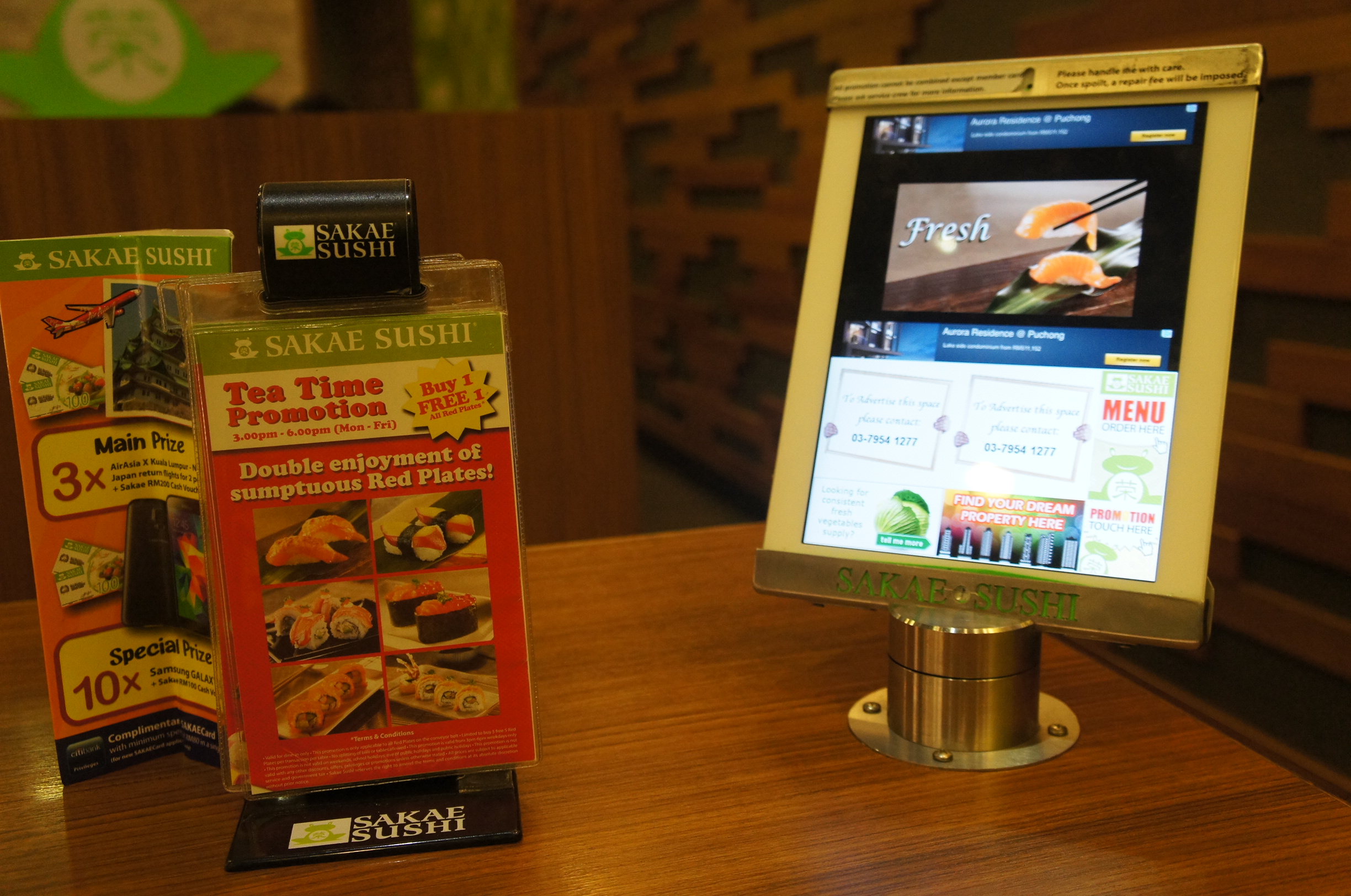 好似板長壽司呀、峰壽司呀咁,Sakae Sushi都係用tablet嚟點菜,我唔鍾意佢呢,你3秒唔郁佢就會彈咗去廣告,駛唔駛咁心急呀?SONY DSC