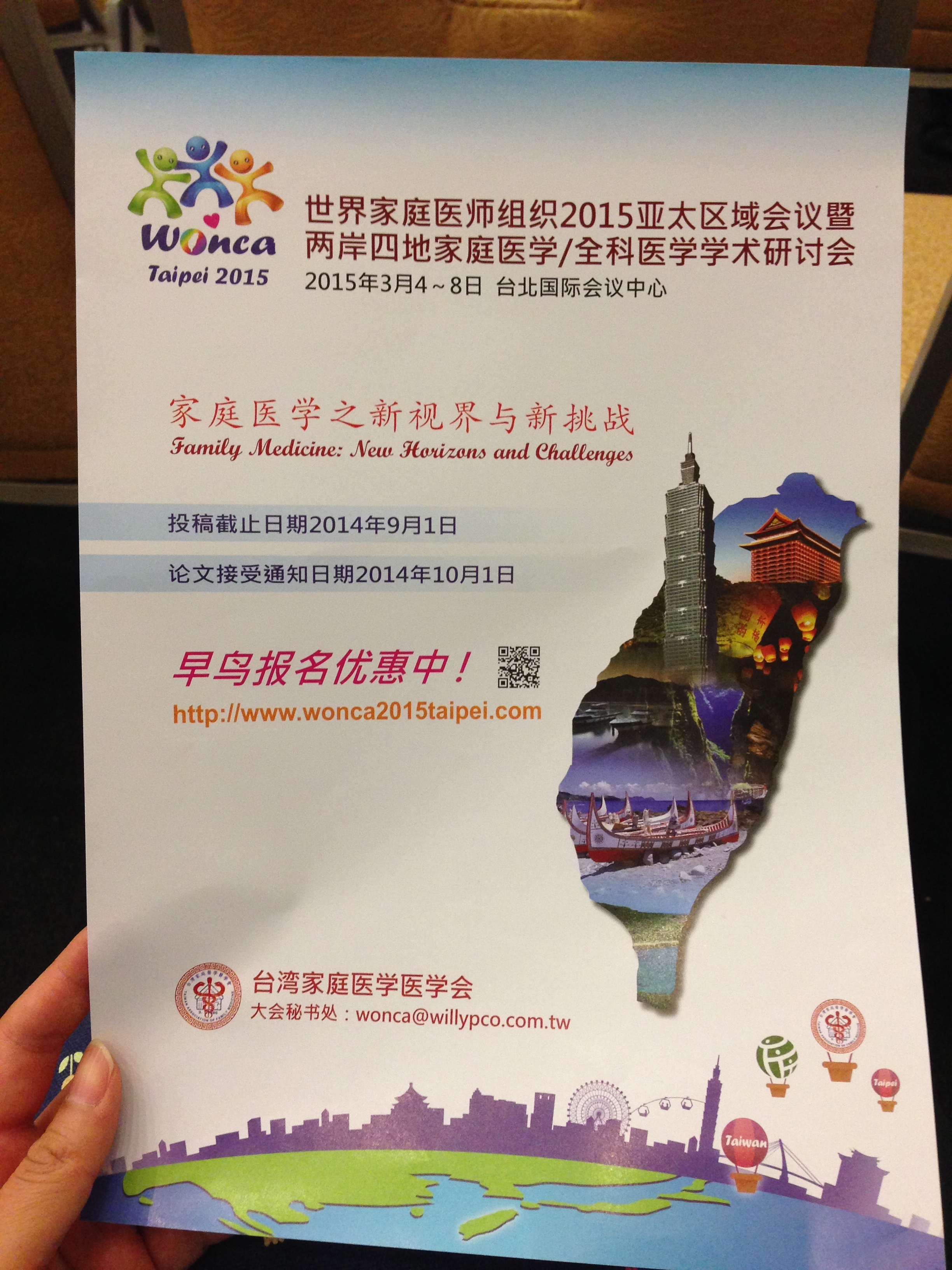 有人派宣傳單張,下年嘅亞太區WONCA係台北舉行呢,近啲啲方便啲~