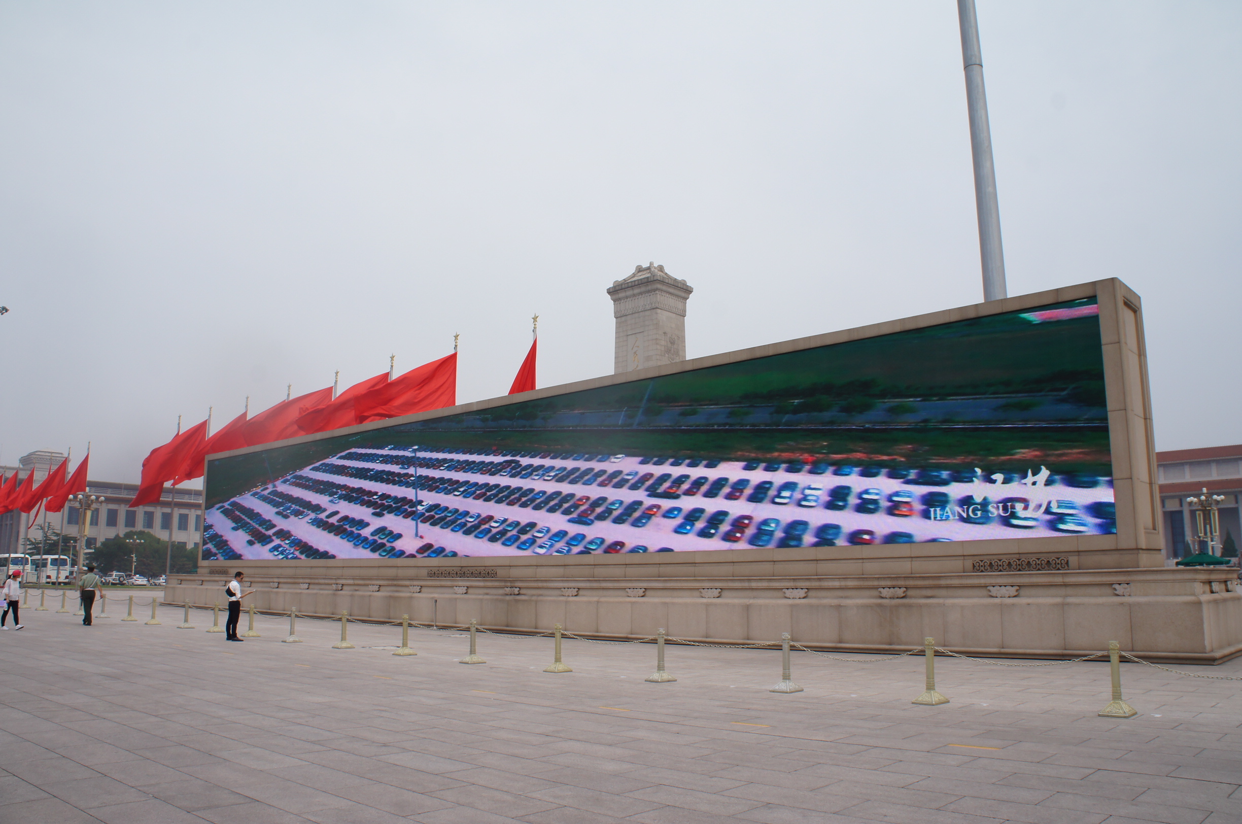 天安門廣場有大大個mon,大大咁播住啲影片,我哋參觀時好似播緊江蘇嘅介紹~