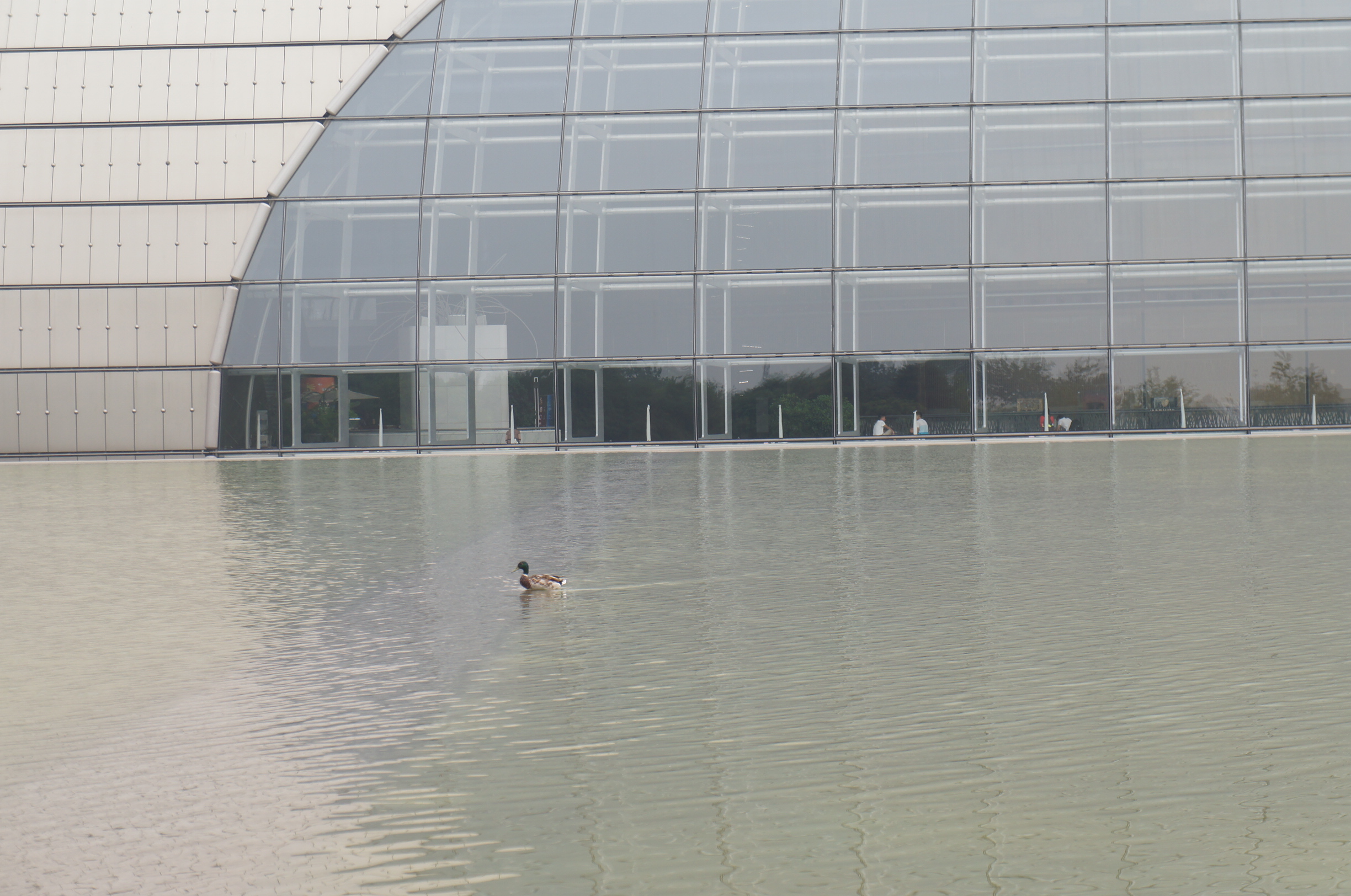 有隻落咗單嘅鴨鴨悠閒地暢泳呢~我哋後來入咗內部,抬頭就係呢個淺淺的水池了~