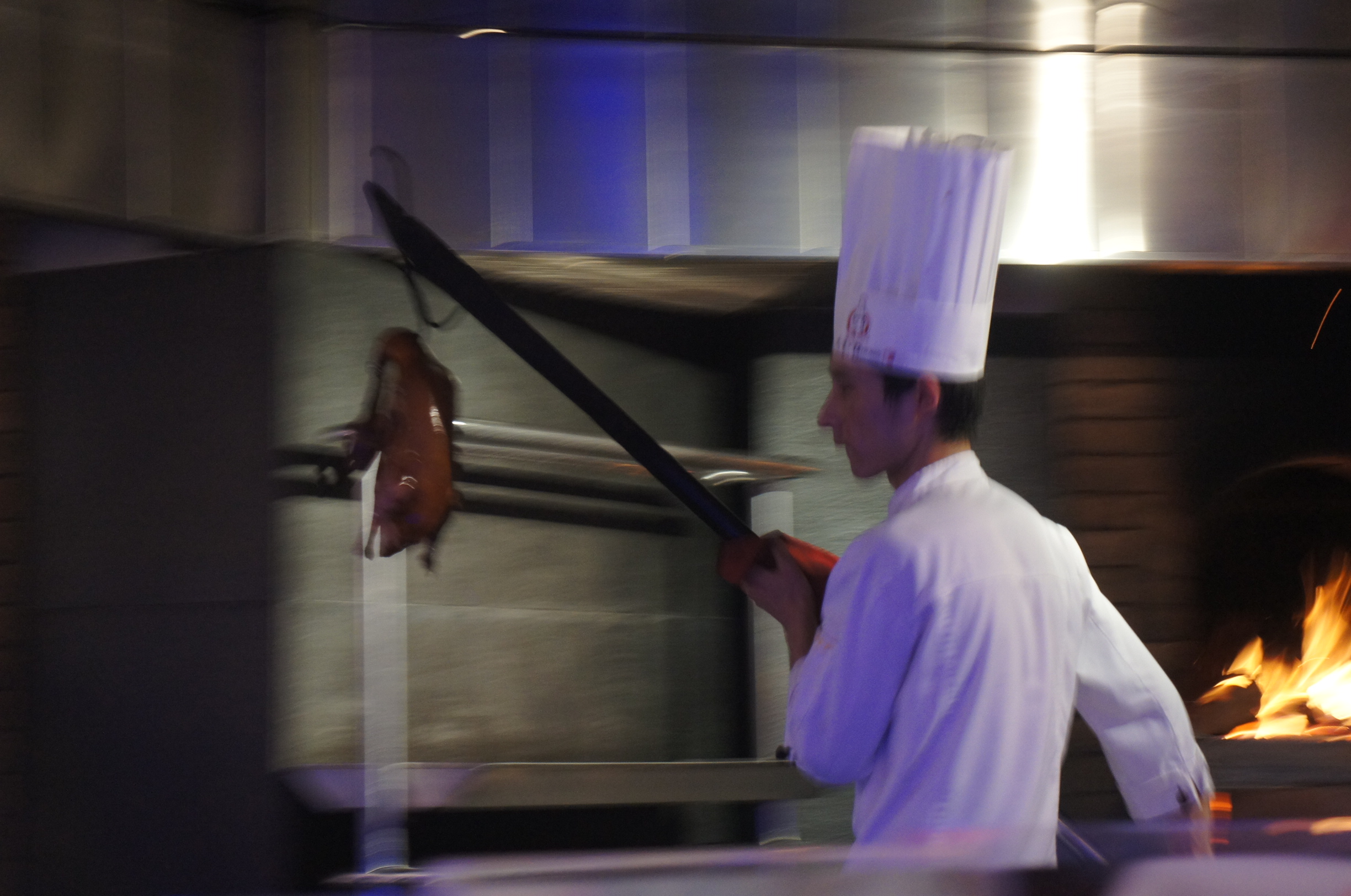 我哋即管試下搵啦(係天黑之前^^”)~結果係嗰一點嘅四圍行來行去都冇啲類似嘅嘢﹗﹗oh no no~退而求其次,附近見到有間食烤鴨又似樣啲嘅就算啦⋯但係北京實在太太太太大,唔係話行兩步就有間餐廳嘅境況⋯而且雨都落得比較密,又好狼狽了~好不容易有間靚靚酒樓,入去一問,原來食揚州菜,冇烤鴨~