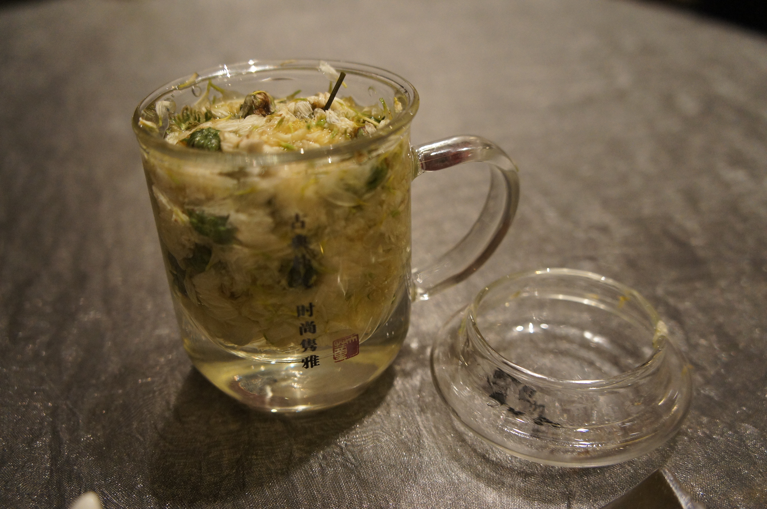 大董烤鴨屬於比較精緻嘅餐廳,價錢都唔平,飲品之中其實比較經濟嘅選擇係汽水呀、鮮榨果汁呀嗰啲,茶反而仲貴,而且要逐位叫,但感覺上食中菜都係飲茶搭調啲,我哋揀咗平時少啲飲嘅菊花~上次去上海時遇著相同嘅狀況又係飲咗菊花呢~(請參閱:16-6-2010:上海世博遊day 1.南京路步行街)