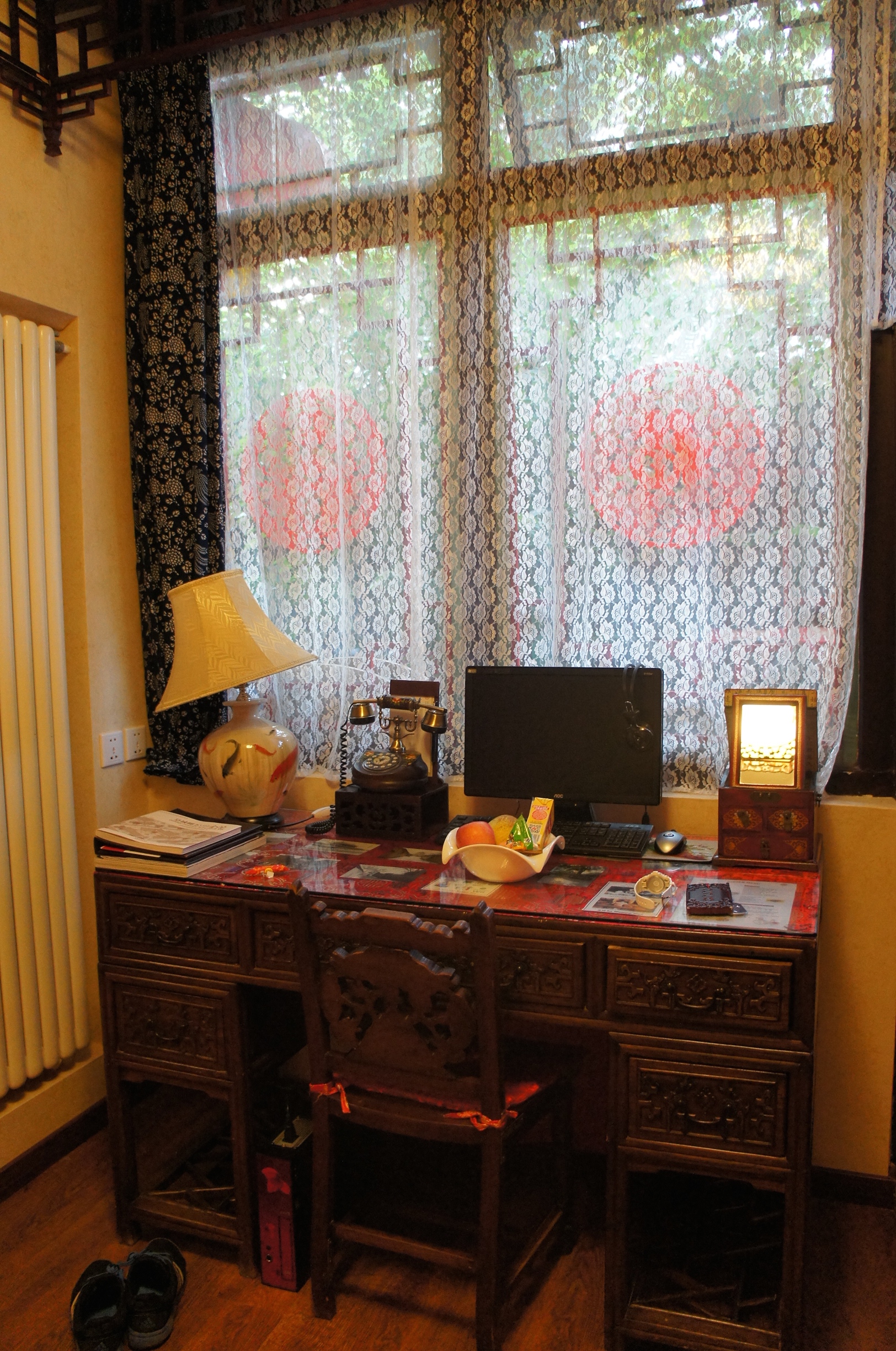 房間好大,而且陳設古色古香,好有中國風味,傢俬都好似古董咁嘅樣~