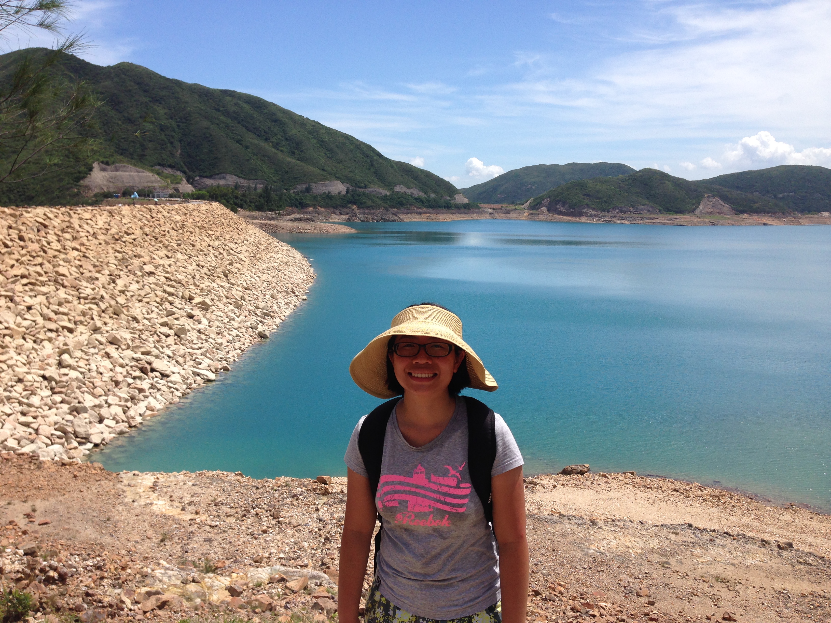 水塘啲水嘅顏色咁靚嘅?我哋遠遠望到東壩,最醒目嘅就係排成一列嘅的士了﹗當時我哋已經決定唔行了,就呢度搭番的士出去西貢啦,呵呵~day問我要唔要影相,我二話不說,走咯走咯就上的士,原來佢叫我影嗰啲六角柱柱,哎吔,我想影呀,噢,下次啦~:p