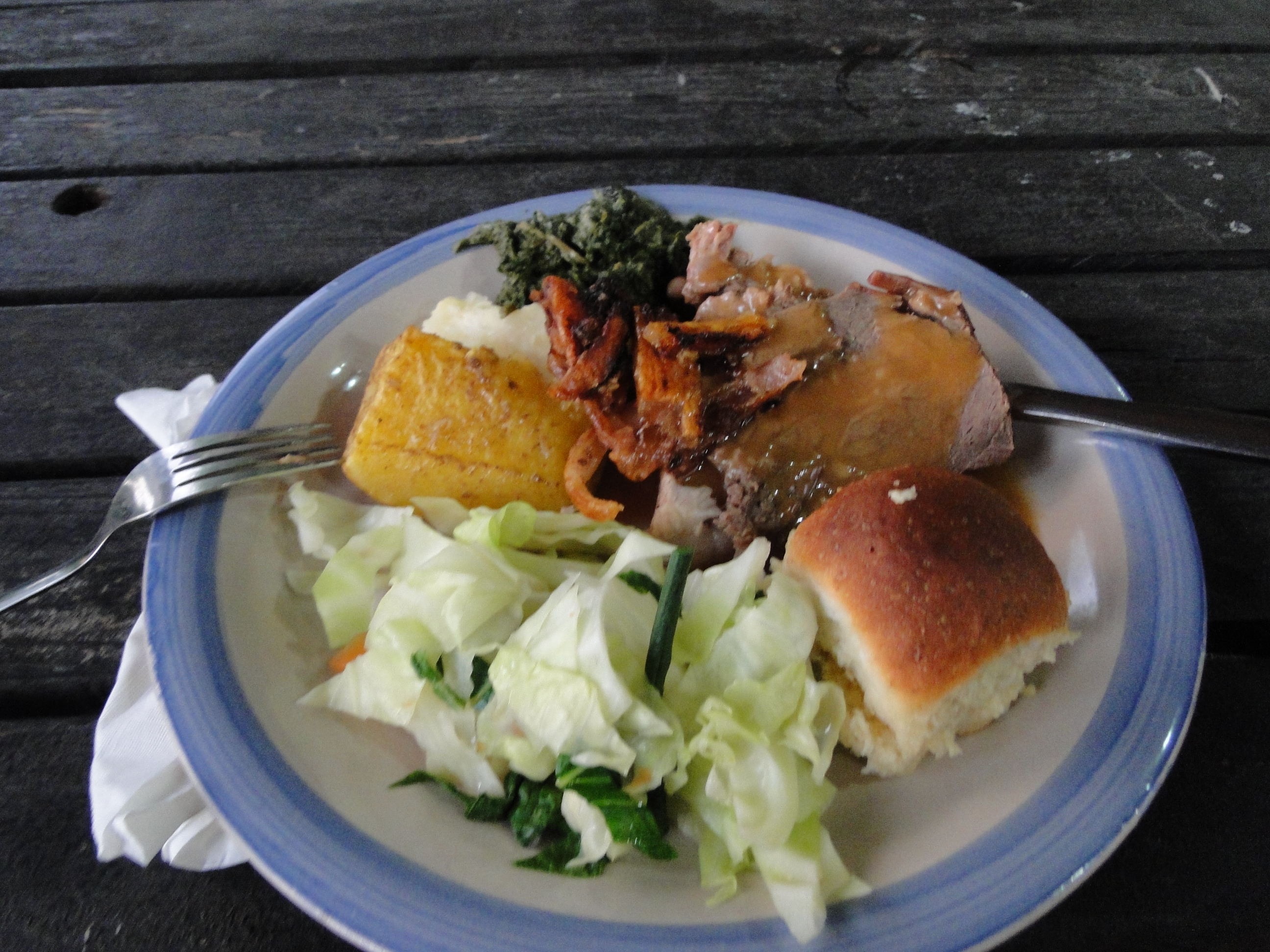 右上嘅烤牛肉係Lovo啦,左上嘅薯都係Lovo,其他食物仲有麵包、沙律等等,好豐富~