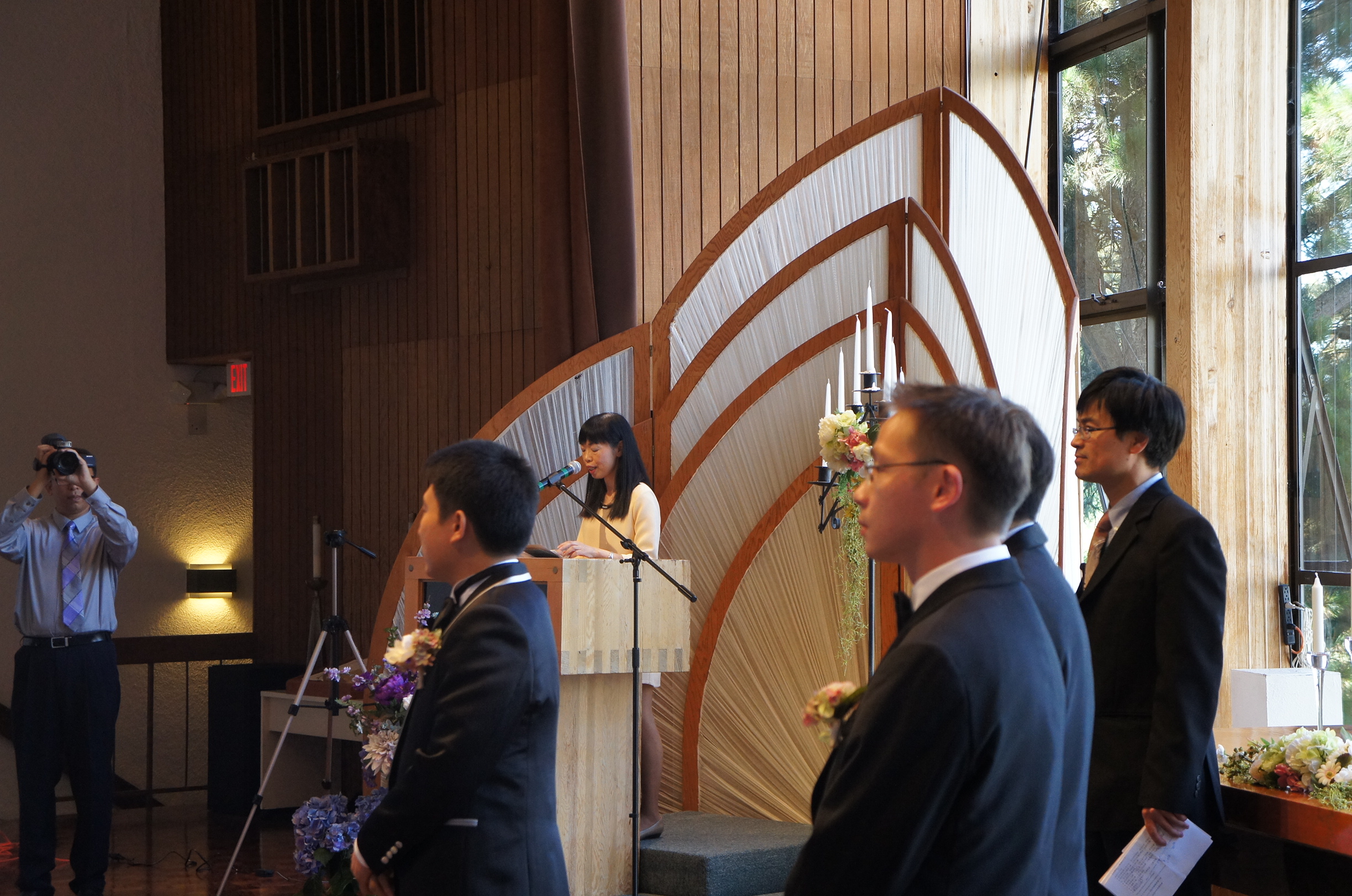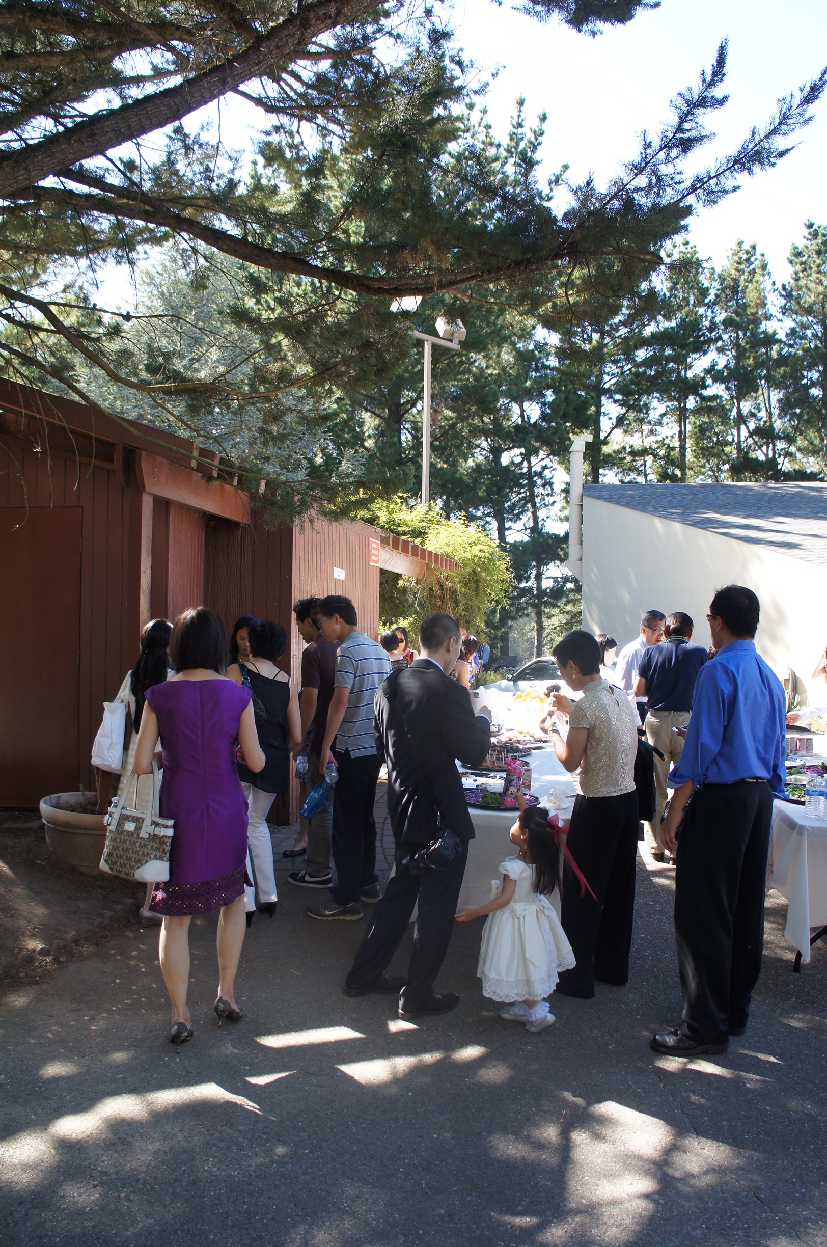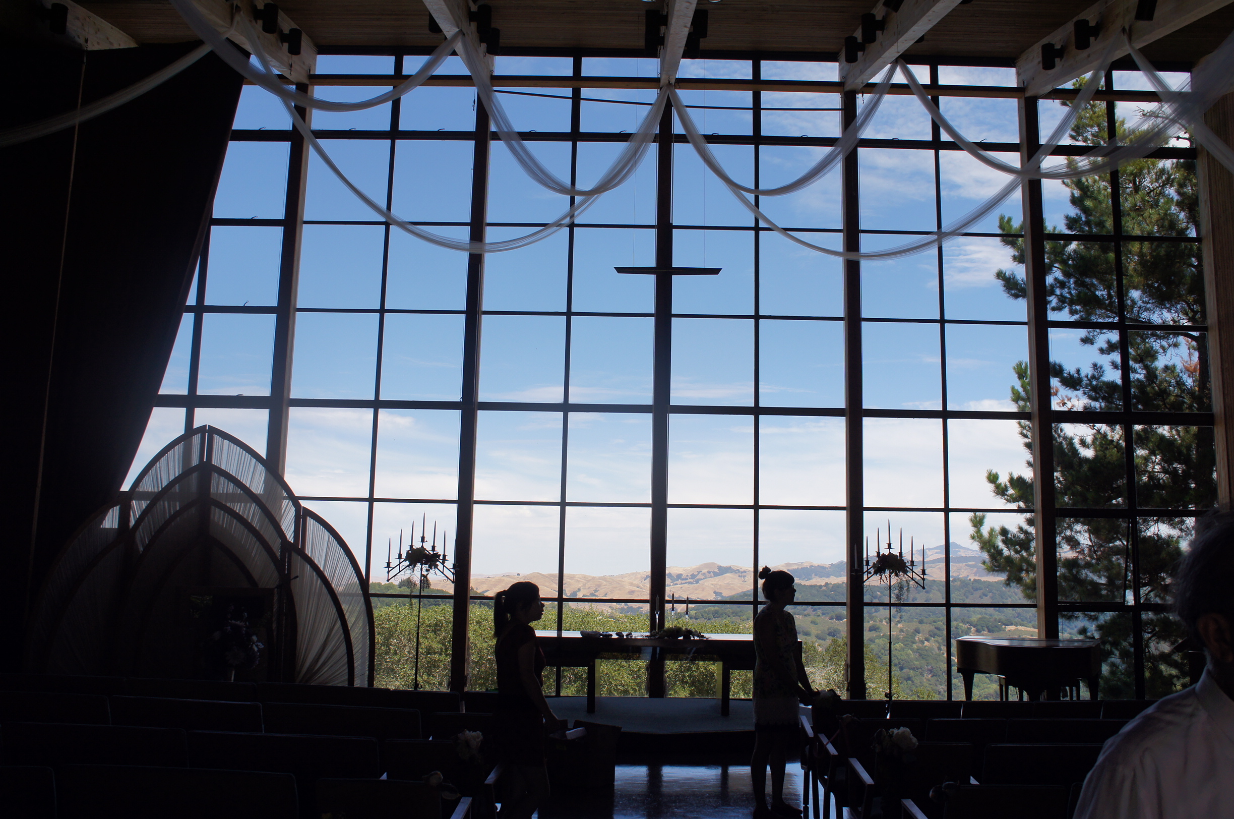 啱啱係明明車上呼呼大睡嘅幾位乘客,半睡半醒之際發現架車慢慢向上坡行,睇住車嘅GPS,咦,已經去到Skyline Boulevard,差唔到lu喎~一落車,就明白點解呢對couple會揀呢個地方行結婚典禮﹗周圍就好似去到郊外,展望出去都係翠綠嘅樹木,入去新娘房搵珊珊之前,入去聖殿睇下先~
